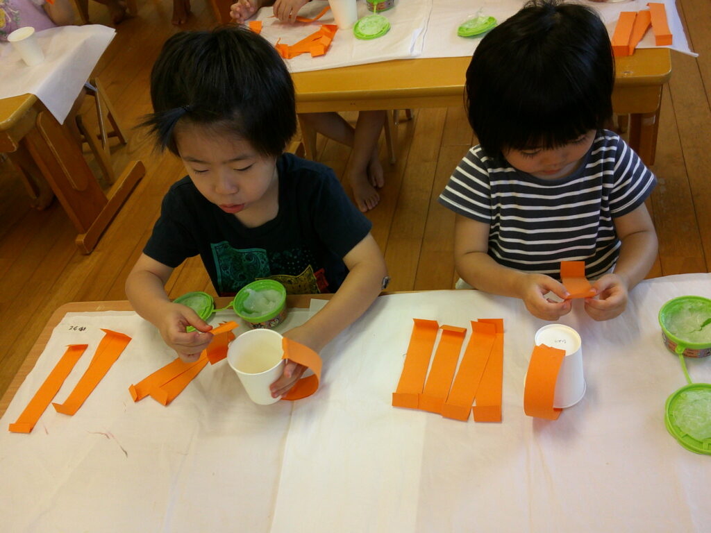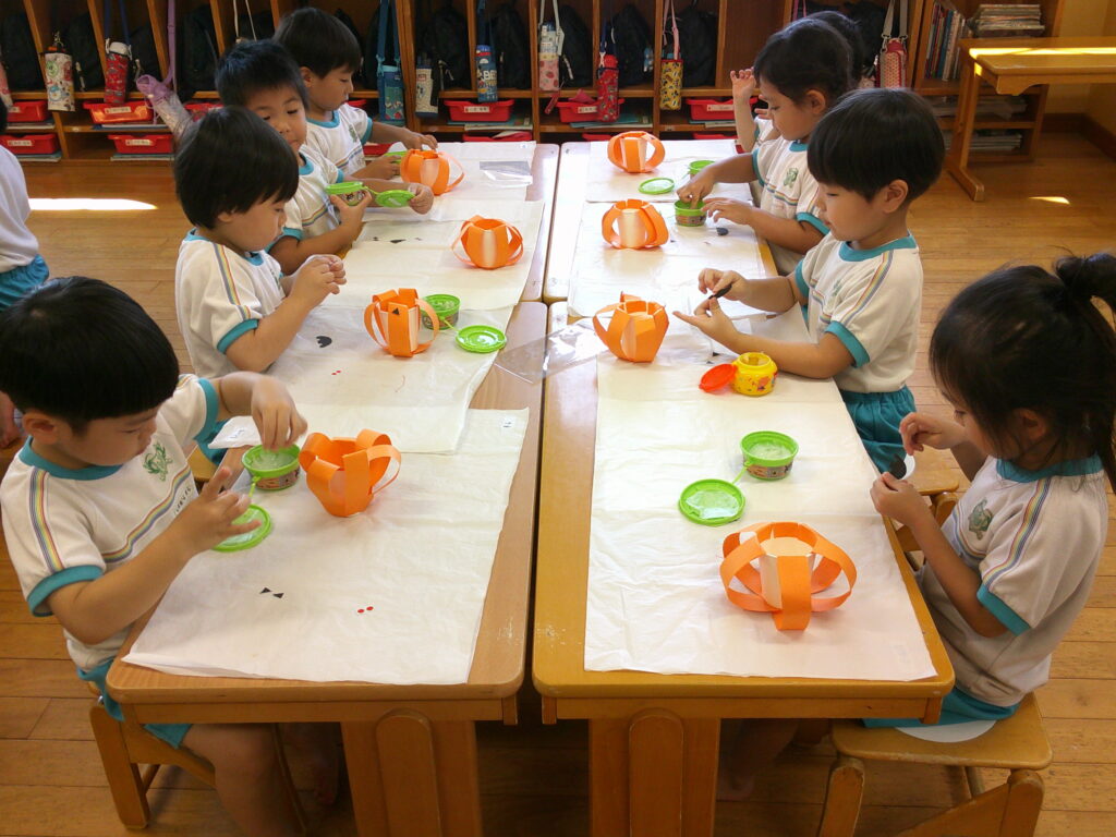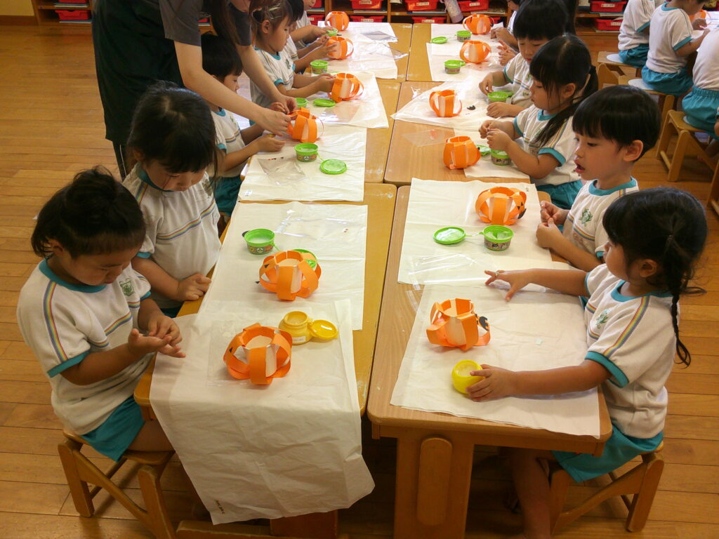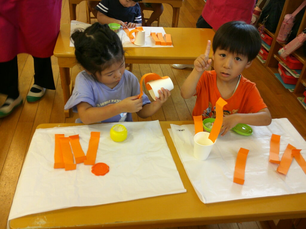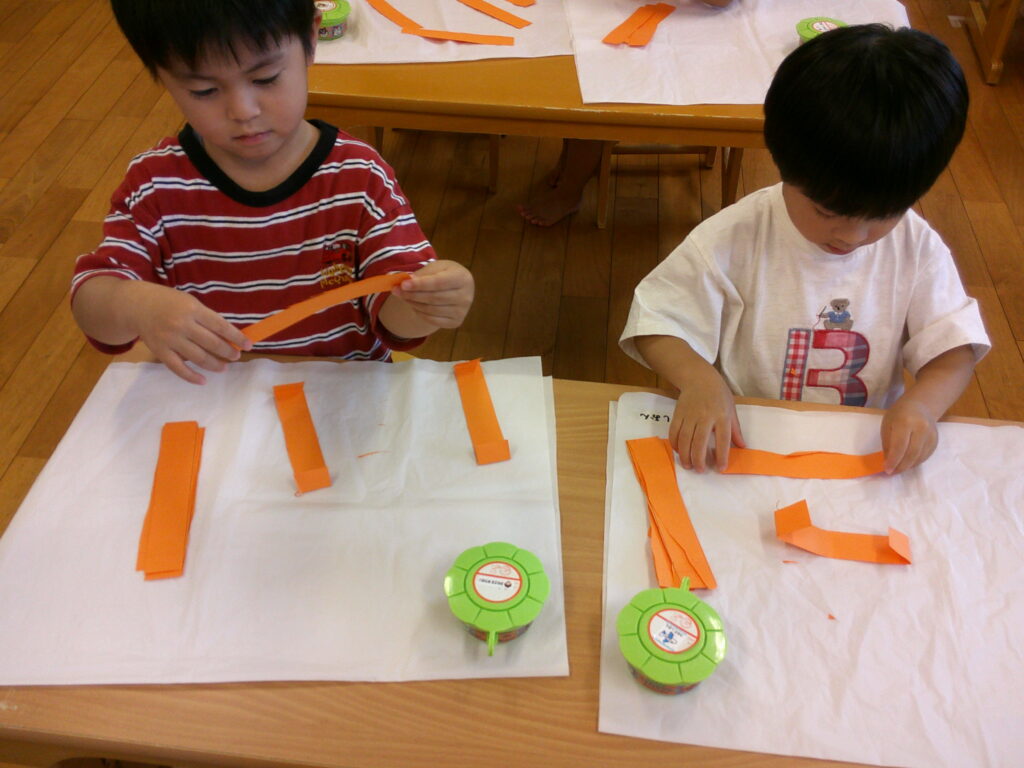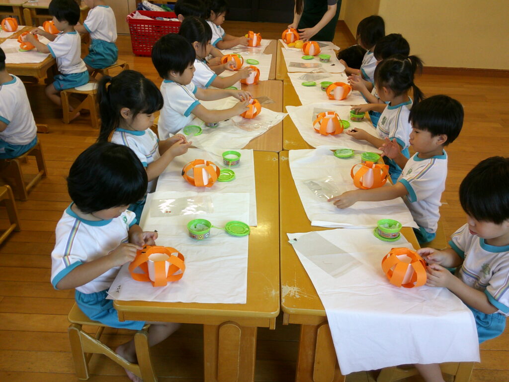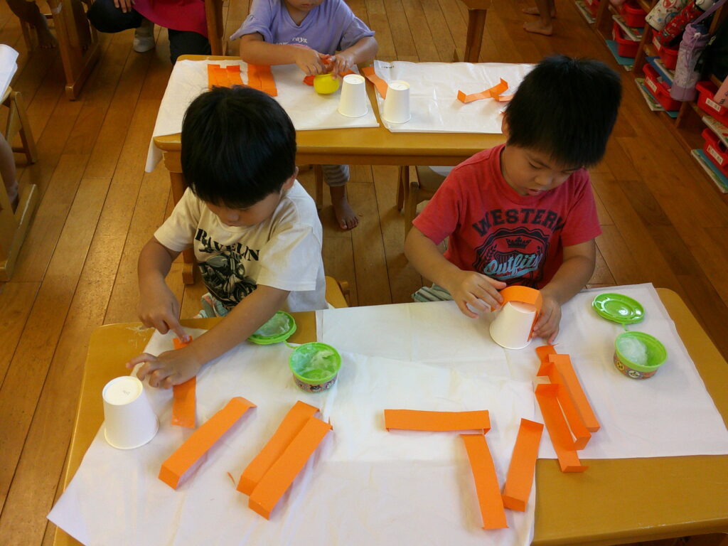 昨日今日の二日間でハロウィン製作をしました😆画用紙を細長く切って、紙コップに糊で貼り、オリジナルのジャックオランタンが出来ました🤩同じパーツを使ってもそれぞれ違うお顔になっていて可愛かったです🥰来週持ち帰りますので、お楽しみに💫