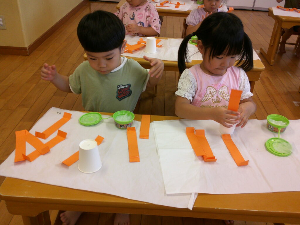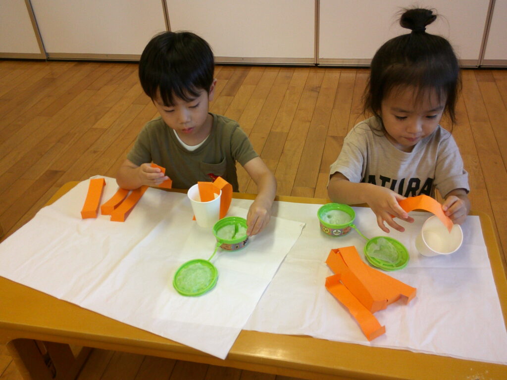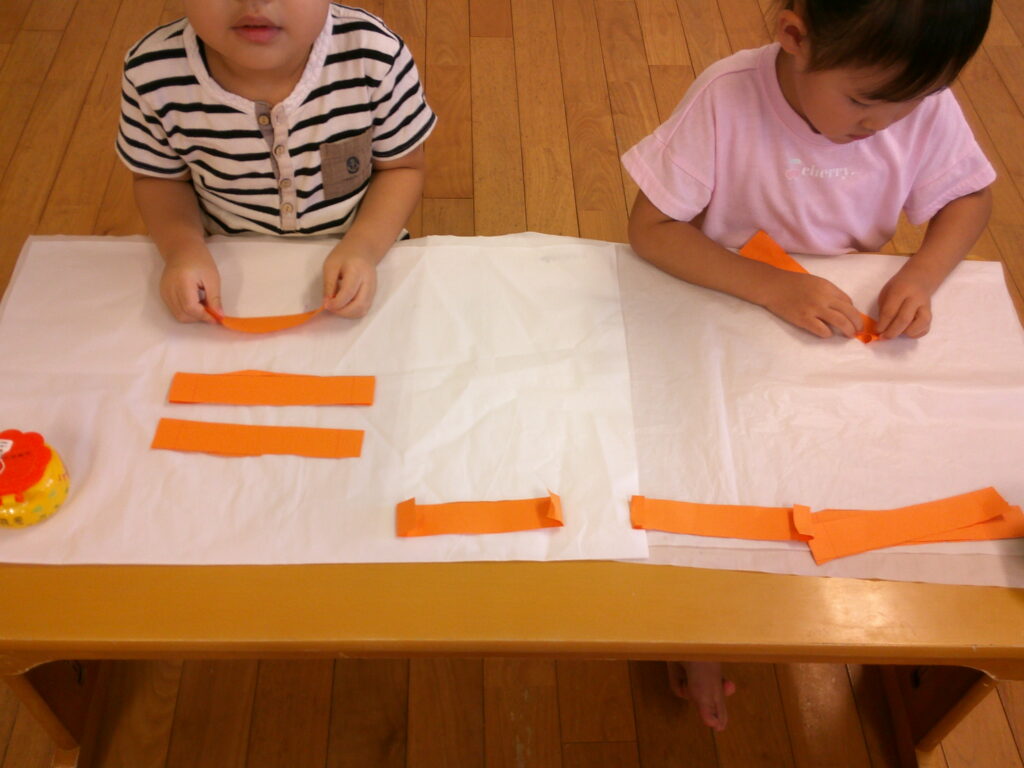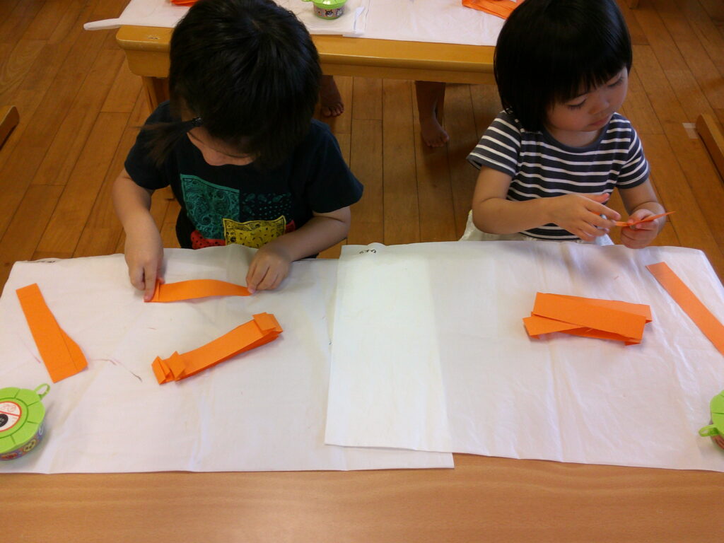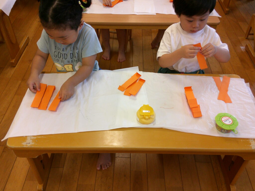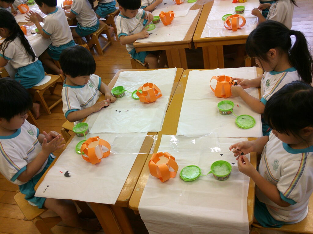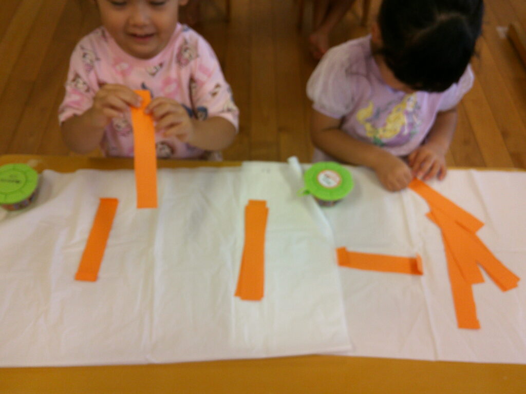 昨日今日の二日間でハロウィン製作をしました😆画用紙を細長く切って、紙コップに糊で貼り、オリジナルのジャックオランタンが出来ました🤩同じパーツを使ってもそれぞれ違うお顔になっていて可愛かったです🥰来週持ち帰りますので、お楽しみに💫