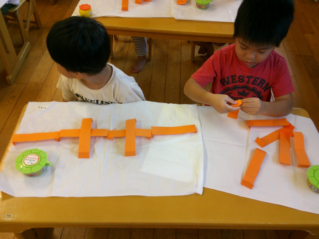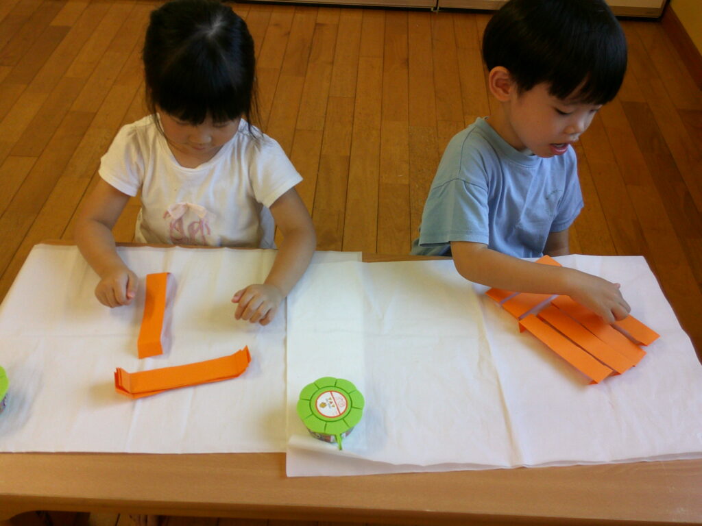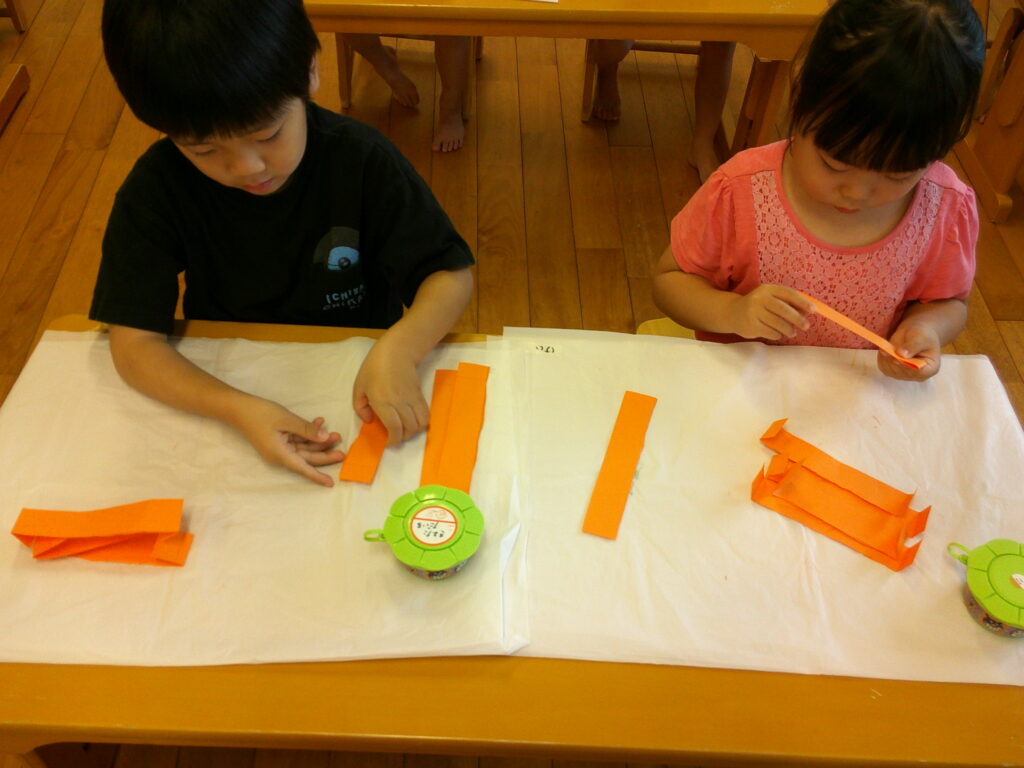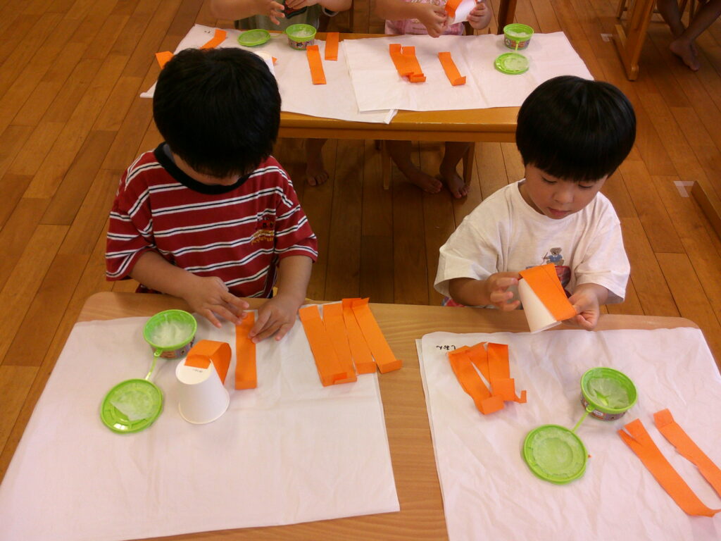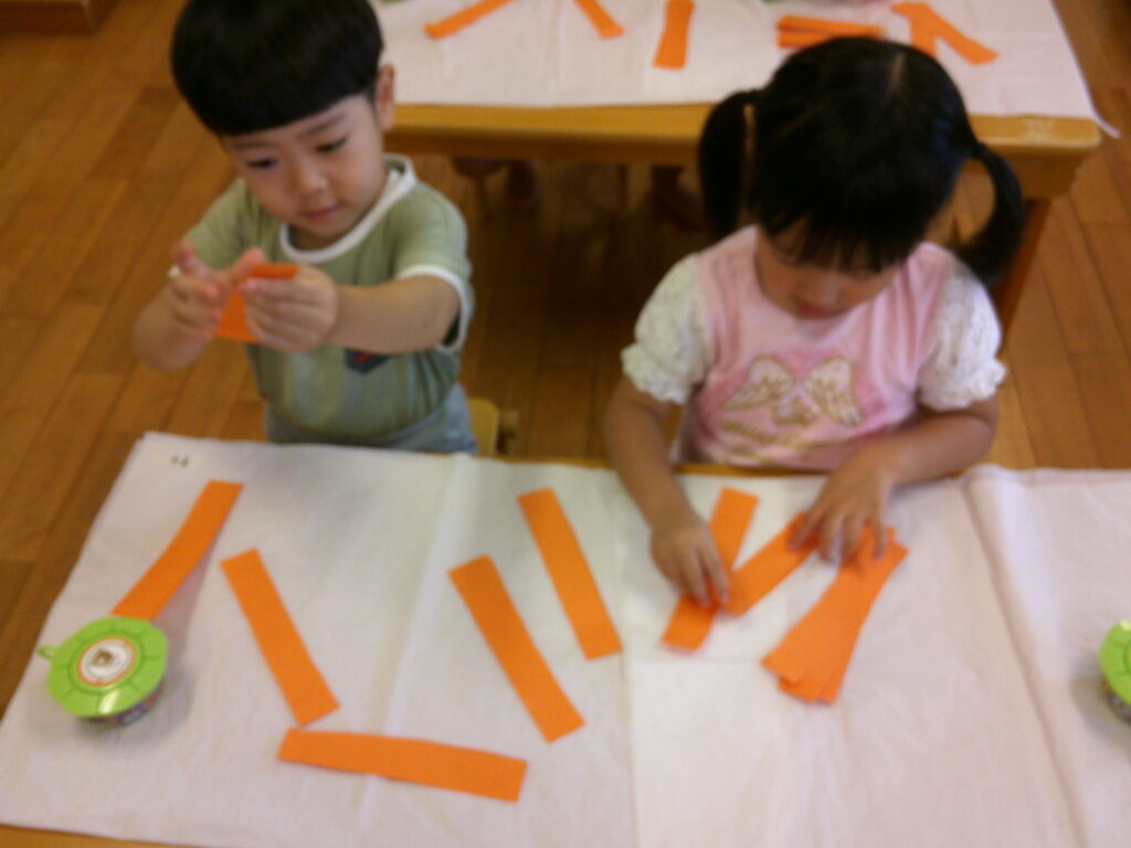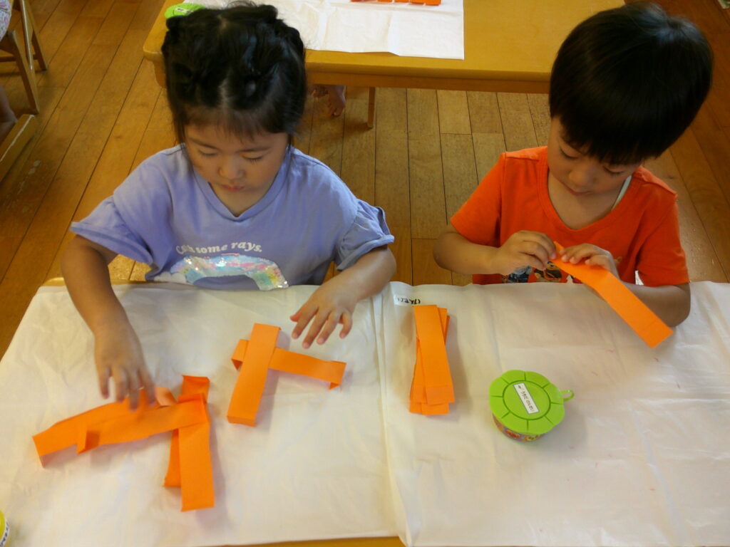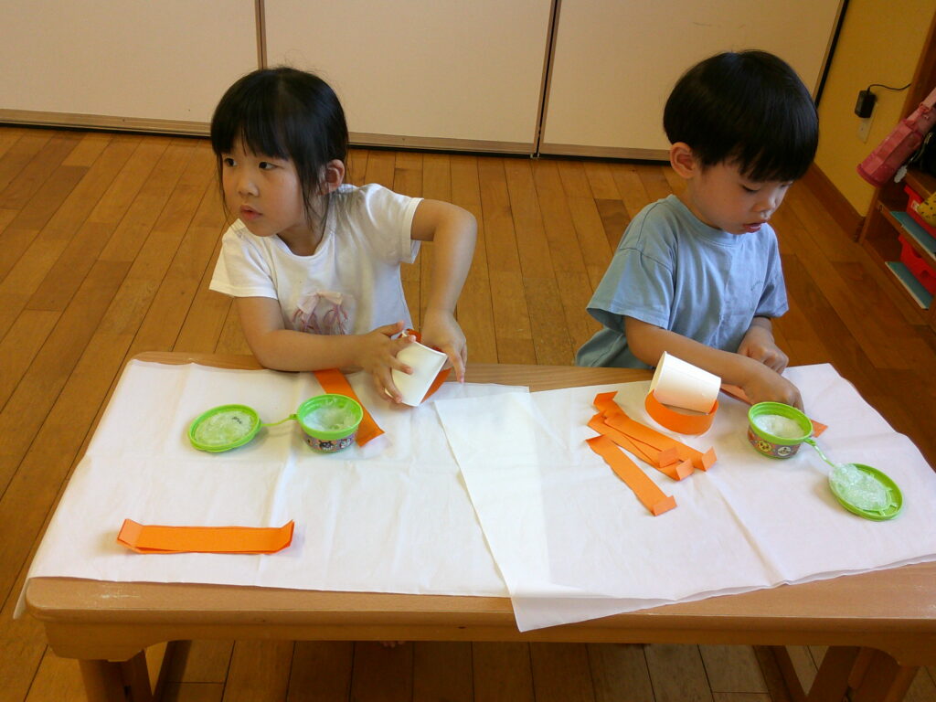 昨日今日の二日間でハロウィン製作をしました😆画用紙を細長く切って、紙コップに糊で貼り、オリジナルのジャックオランタンが出来ました🤩同じパーツを使ってもそれぞれ違うお顔になっていて可愛かったです🥰来週持ち帰りますので、お楽しみに💫