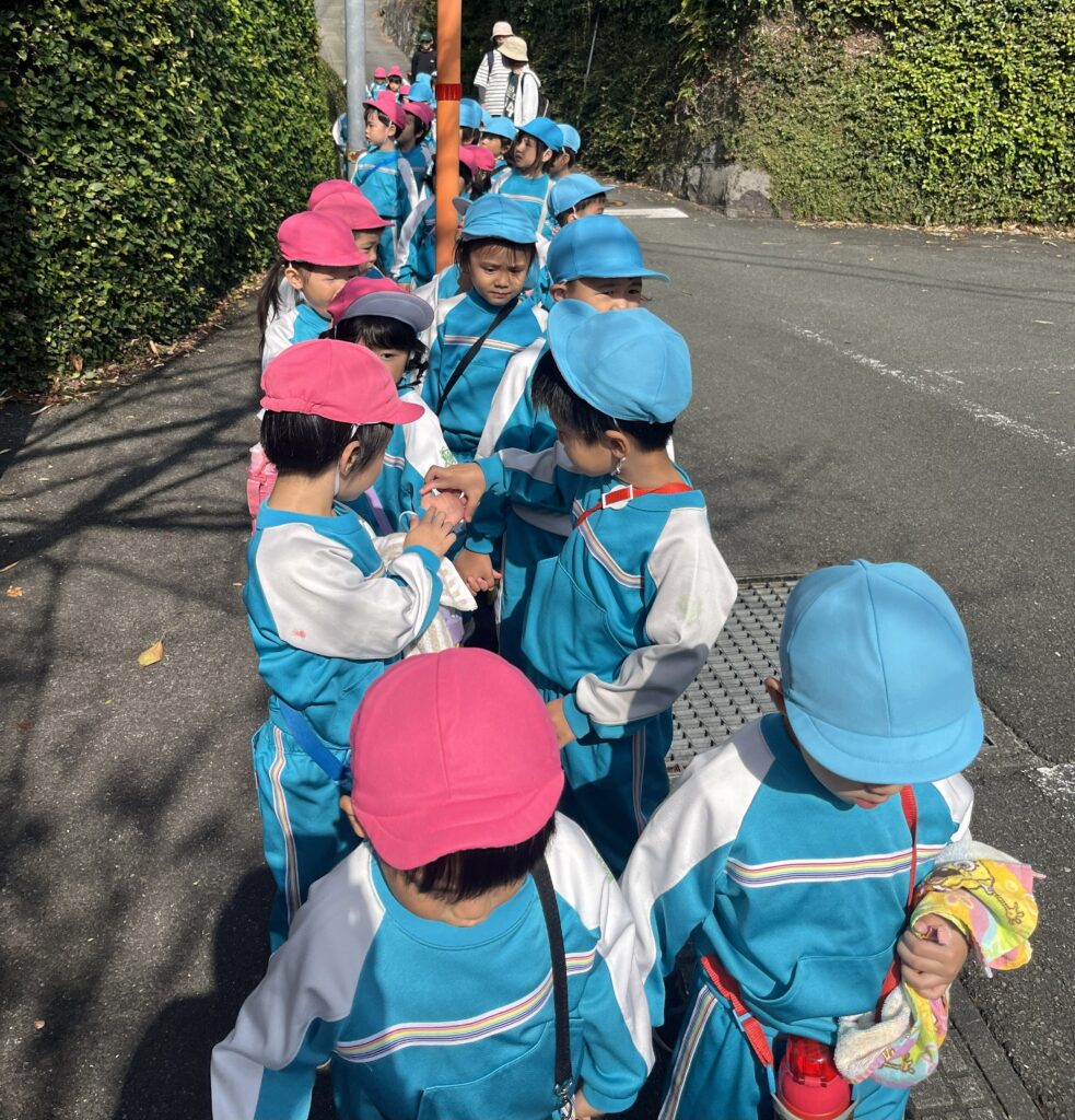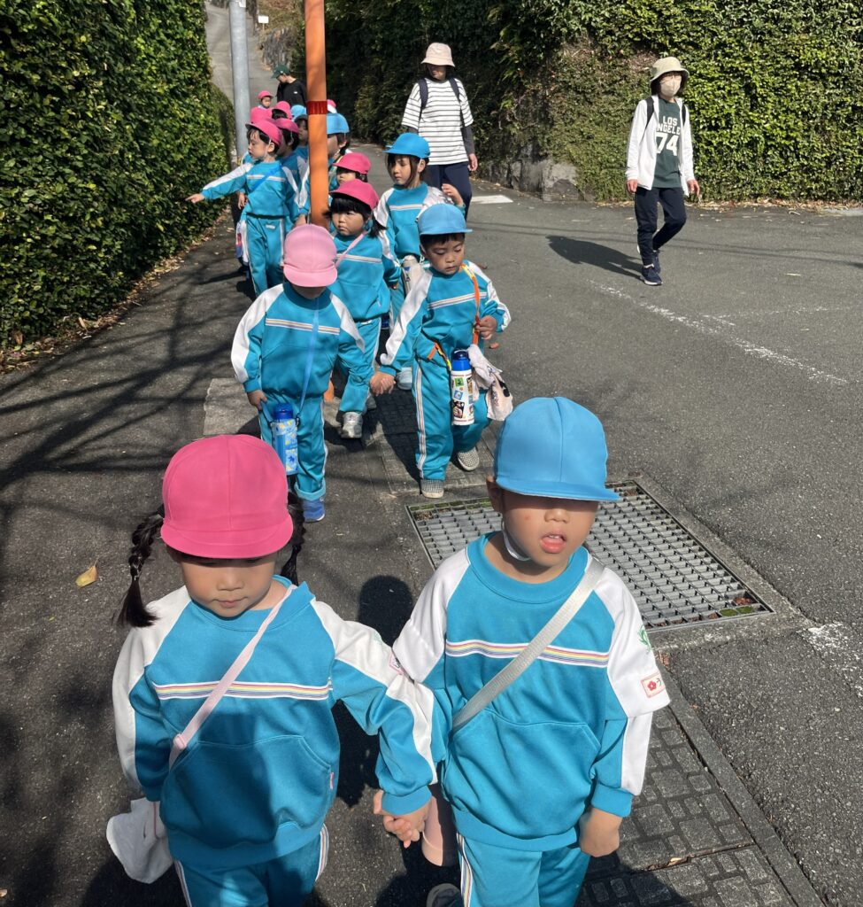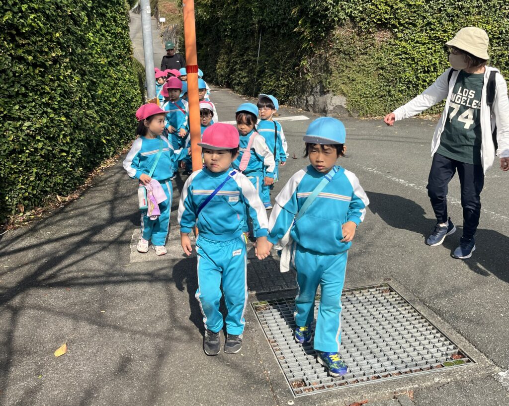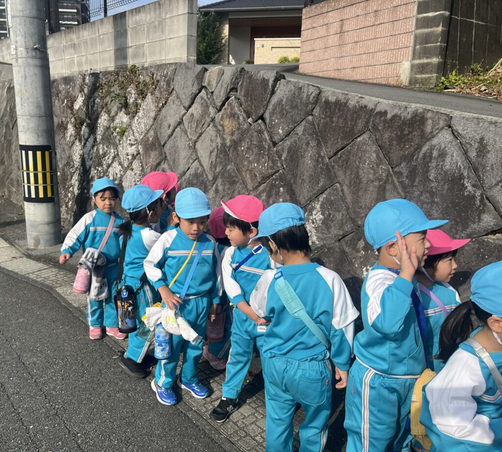 道路を歩く時のお約束をしていざ出発!もも組さんと手を繋いで歩きます🚶