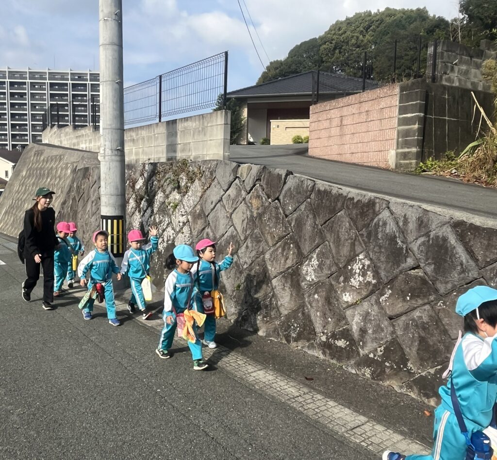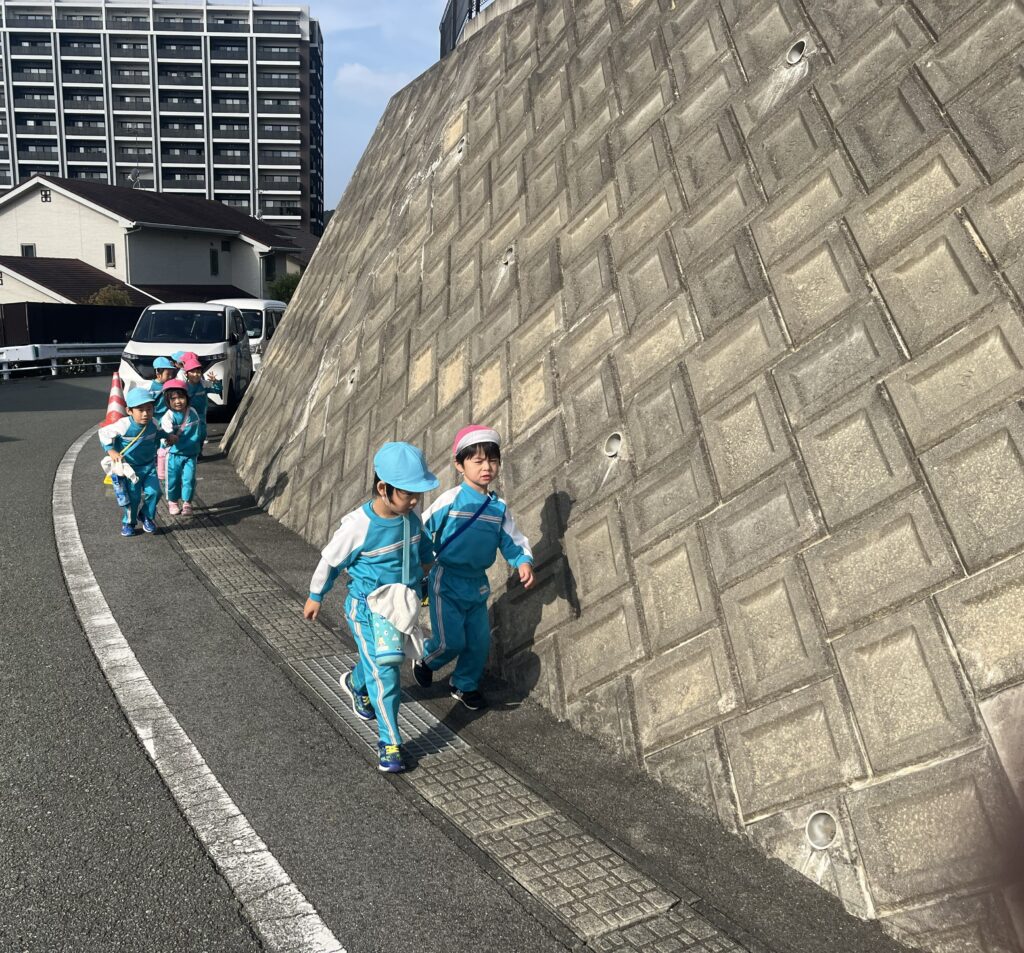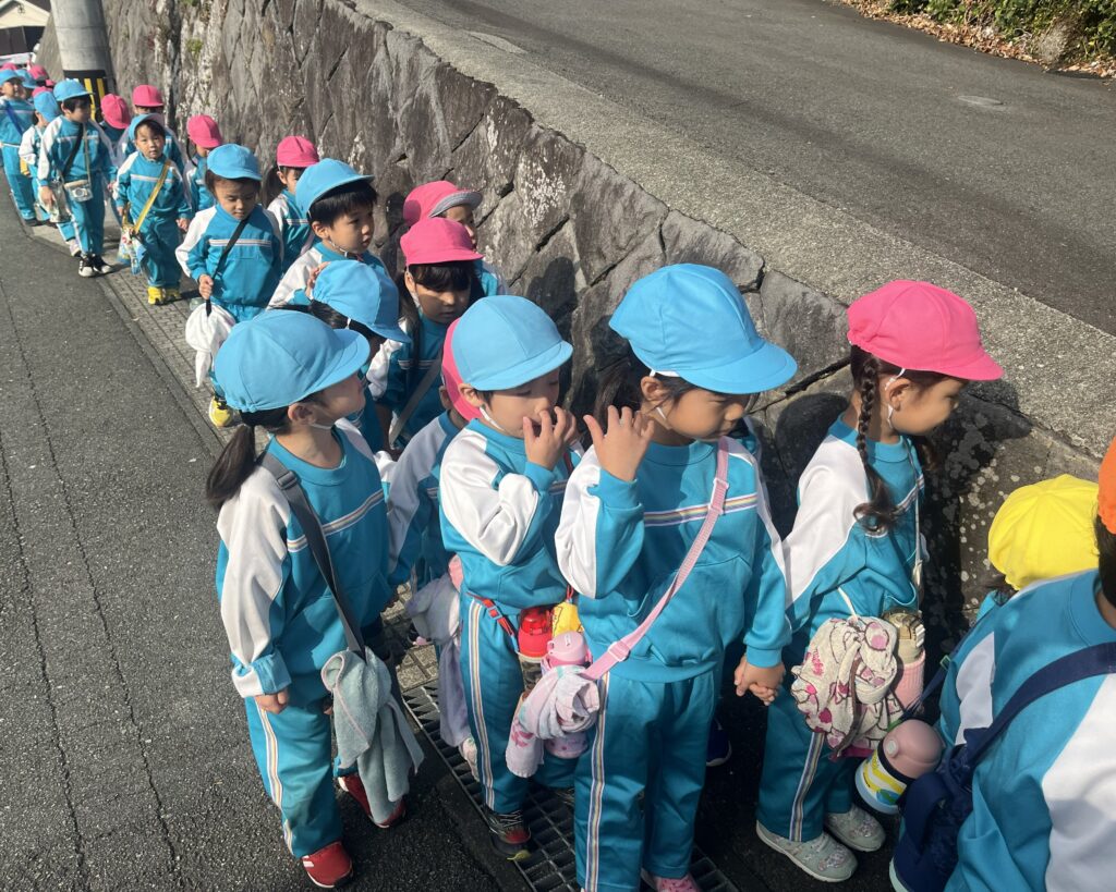 道路を歩く時のお約束をしていざ出発!もも組さんと手を繋いで歩きます🚶
