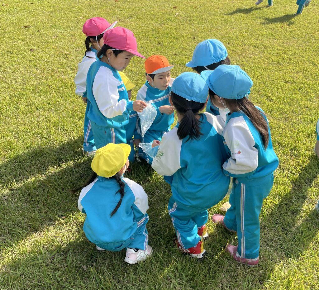 どんぐりを拾ったり、虫を捕まえたお友だちも!