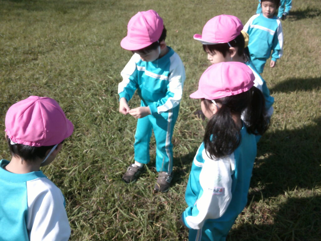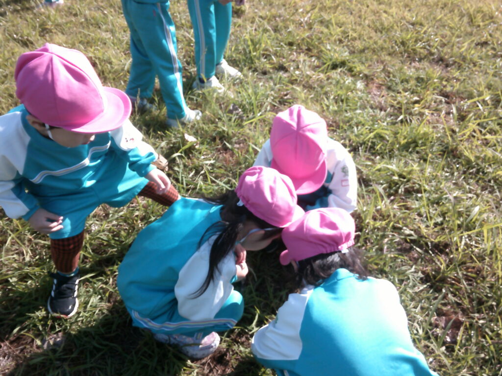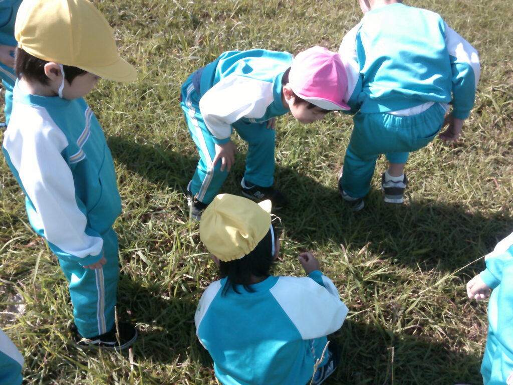 万日山に着いてからはいざ虫探し!バッタやコオロギを見つけては「先生いたよ~✨」と教えてくれました🤗