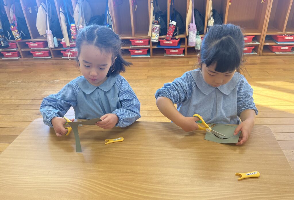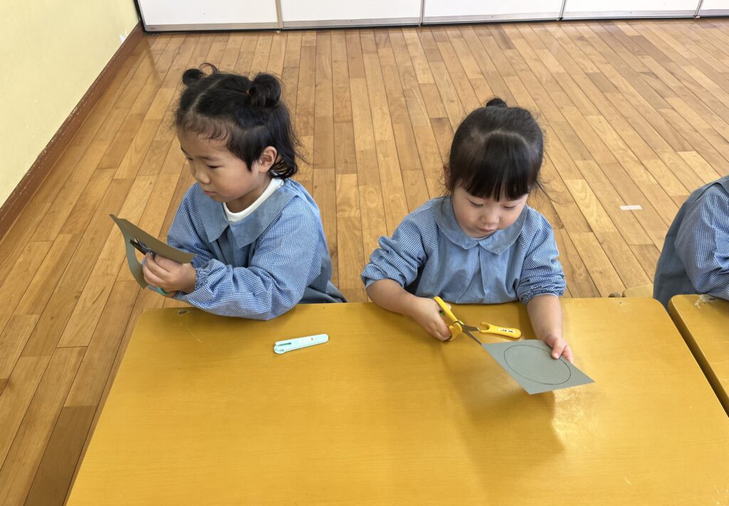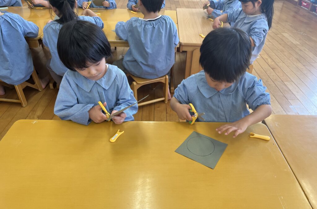 「できるかな~🤔?」「難しいな~😖」と言いながらも頑張って切ってみると、想像以上に上手に切れていて担任はびっくりでした!!今回は一つの円でしたが、上手に切れていたので今度は数を増やして挑戦したいと思います🙂
