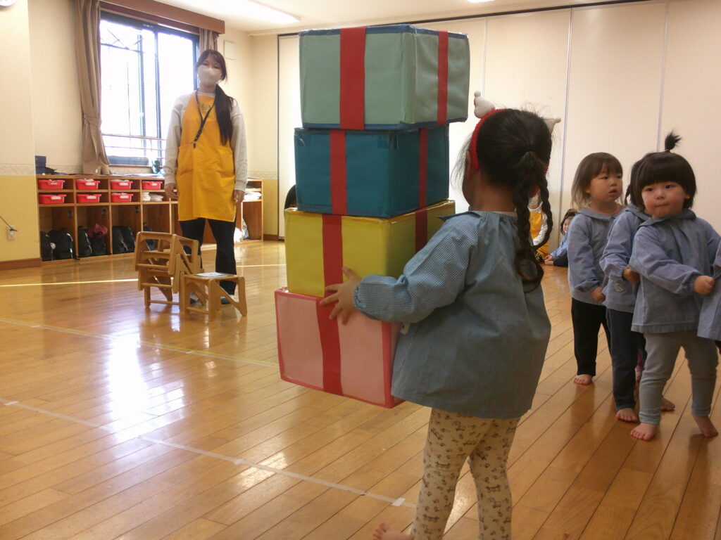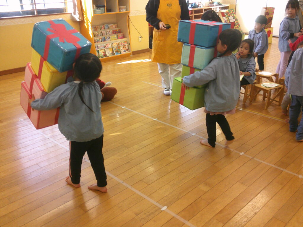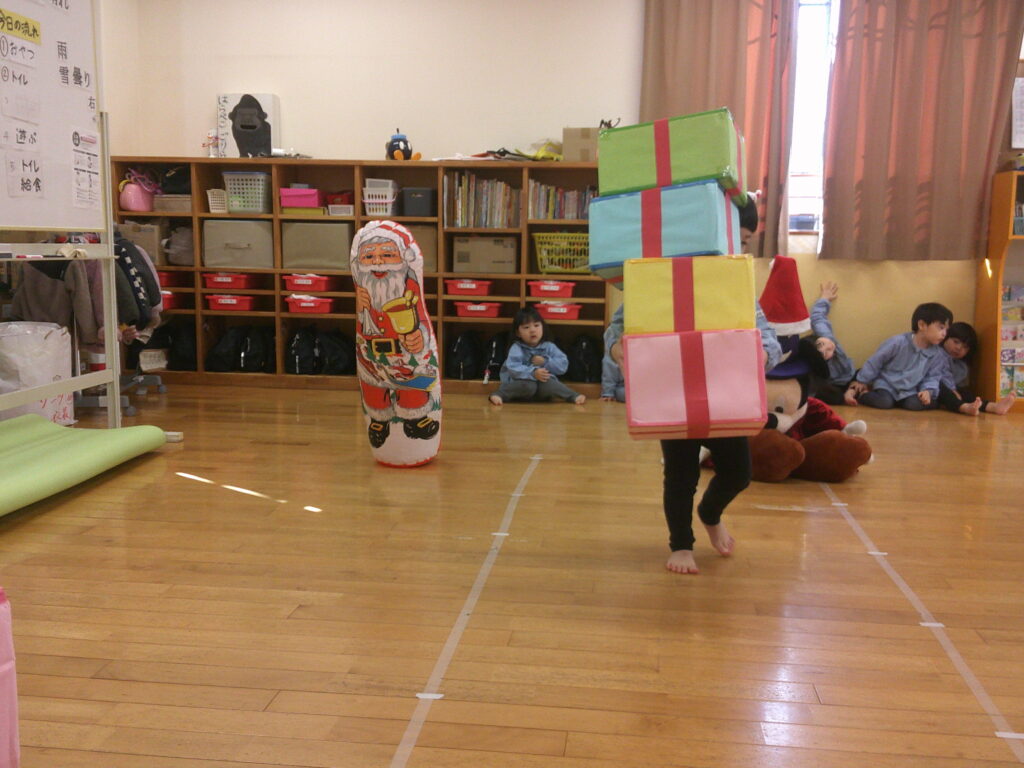 プレゼント運び、的あて、ボーリング、絵合わせ、クリスマスパズルと5つのゲームに挑戦し、キラキラシールを集めに行きました✨