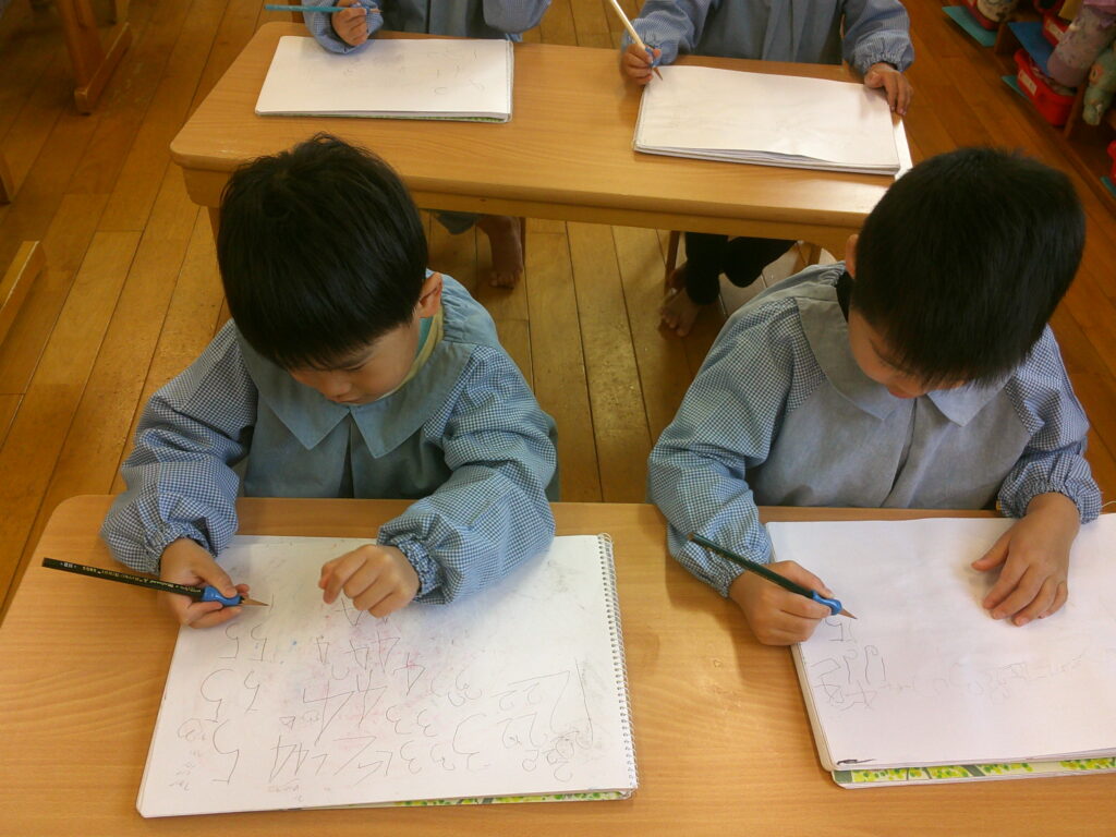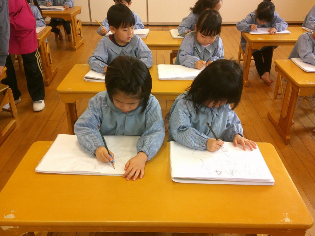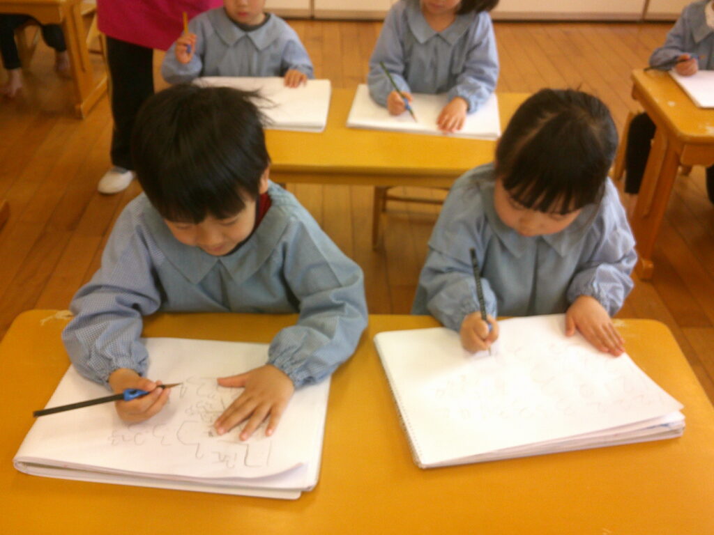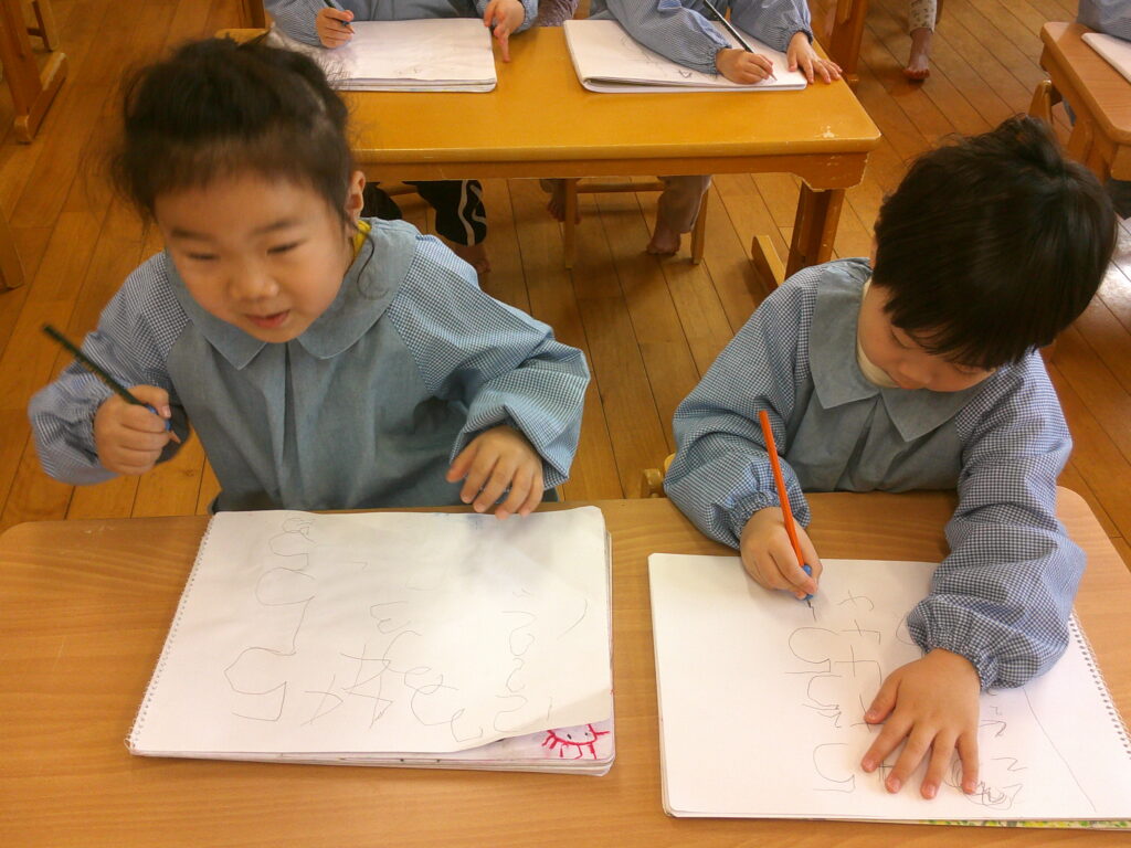 口で書き順を言うのは出来ても実際に書いてみると難しく、「できな~い😣」と言う声もあちらこちらから聞こえてきました。でも最初から上手にできる人はいないんだよ、練習することが大事だよ、とお話すると頑張って書く姿が見られました🔥