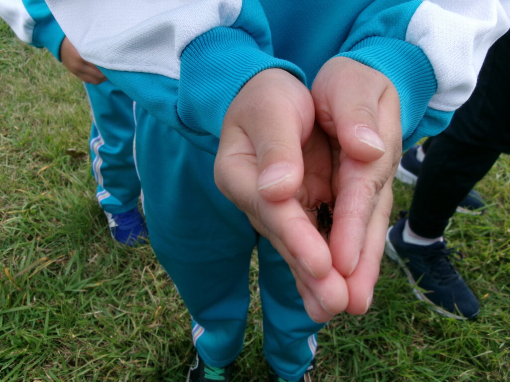 恐る恐る捕まえる子や、「きゃーー!!」と逃げる子も☺️