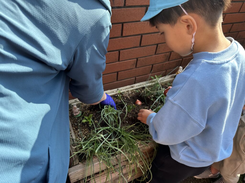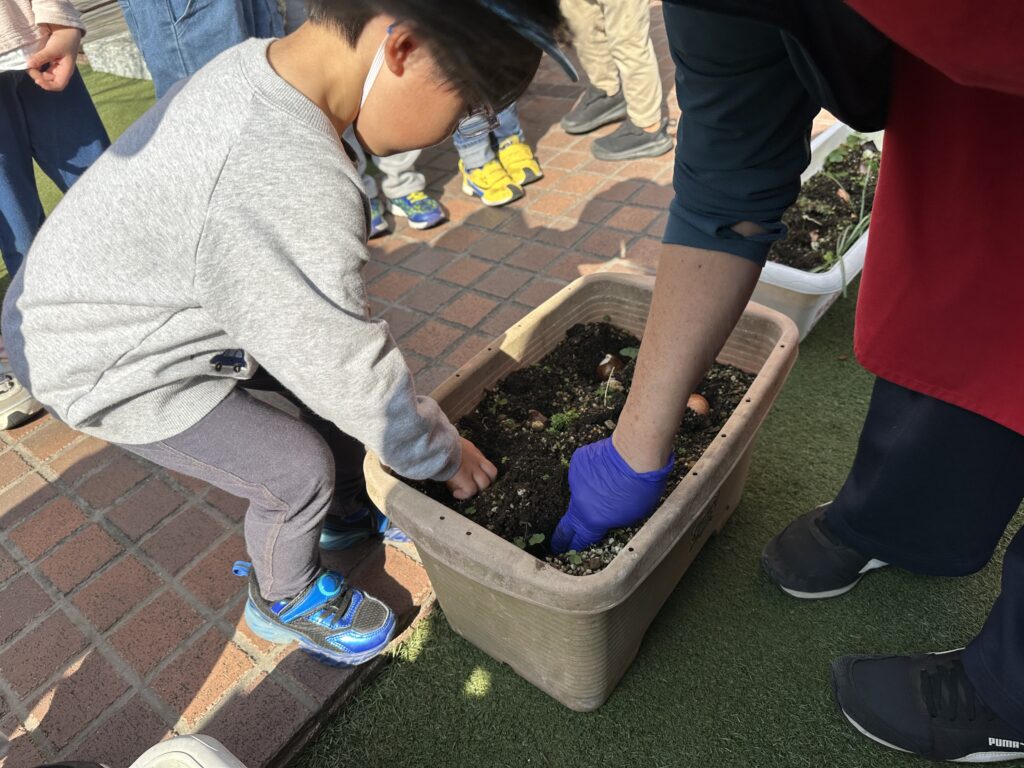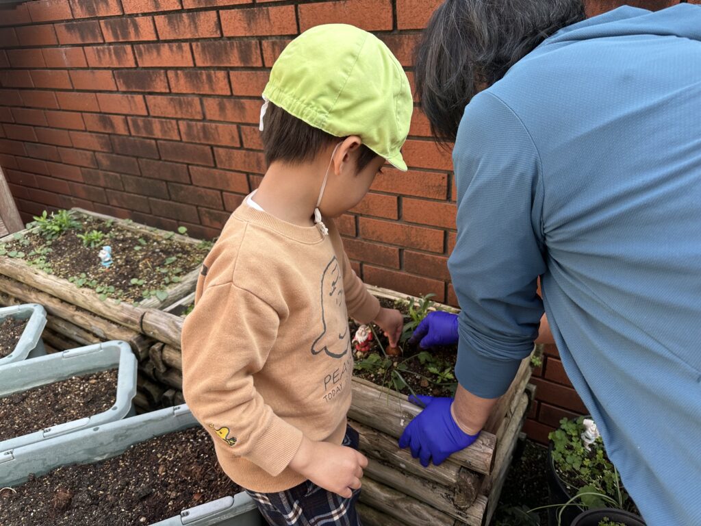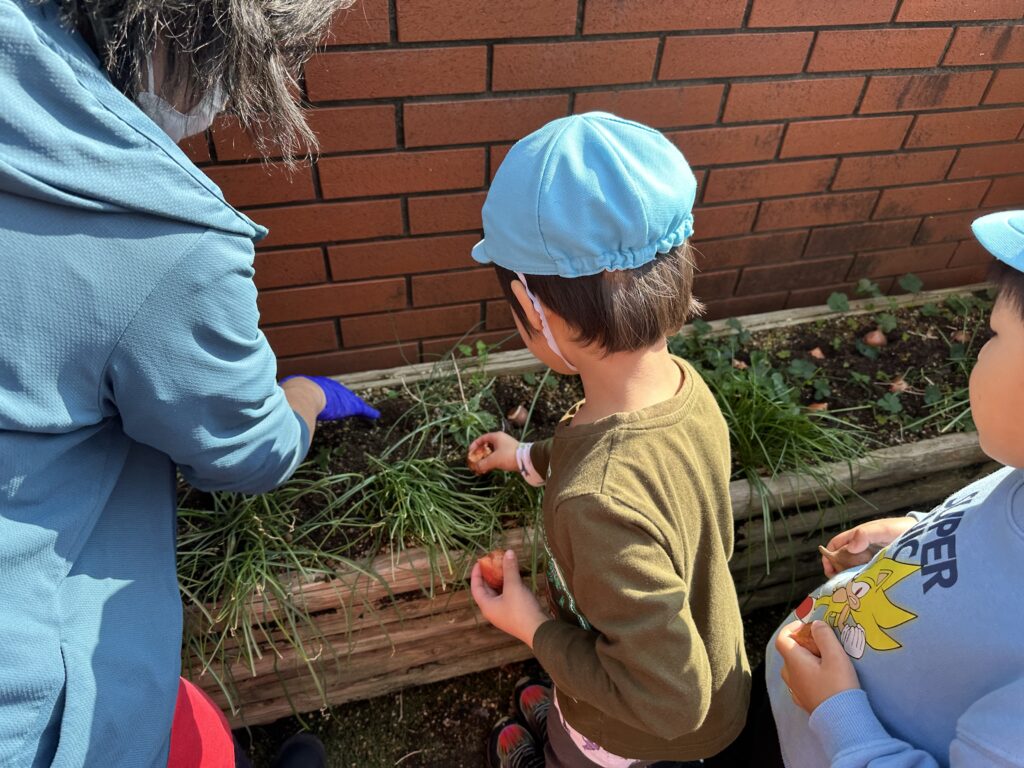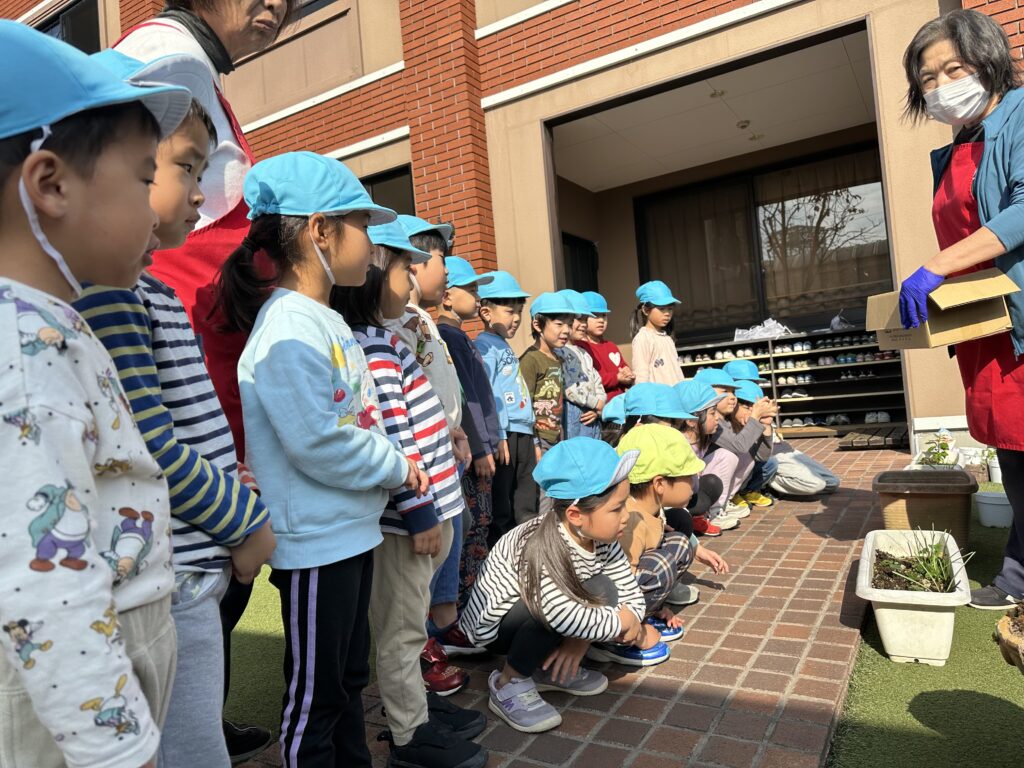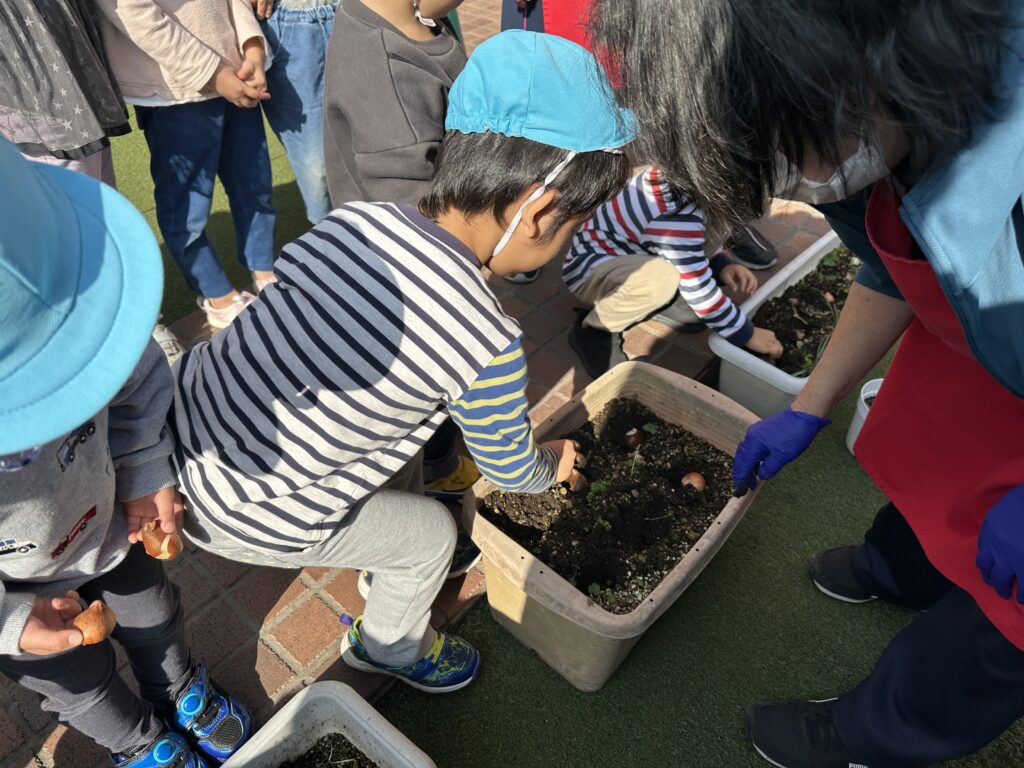 球根を見て「たまねぎ??」と不思議そうに眺めるもも組さん🥰