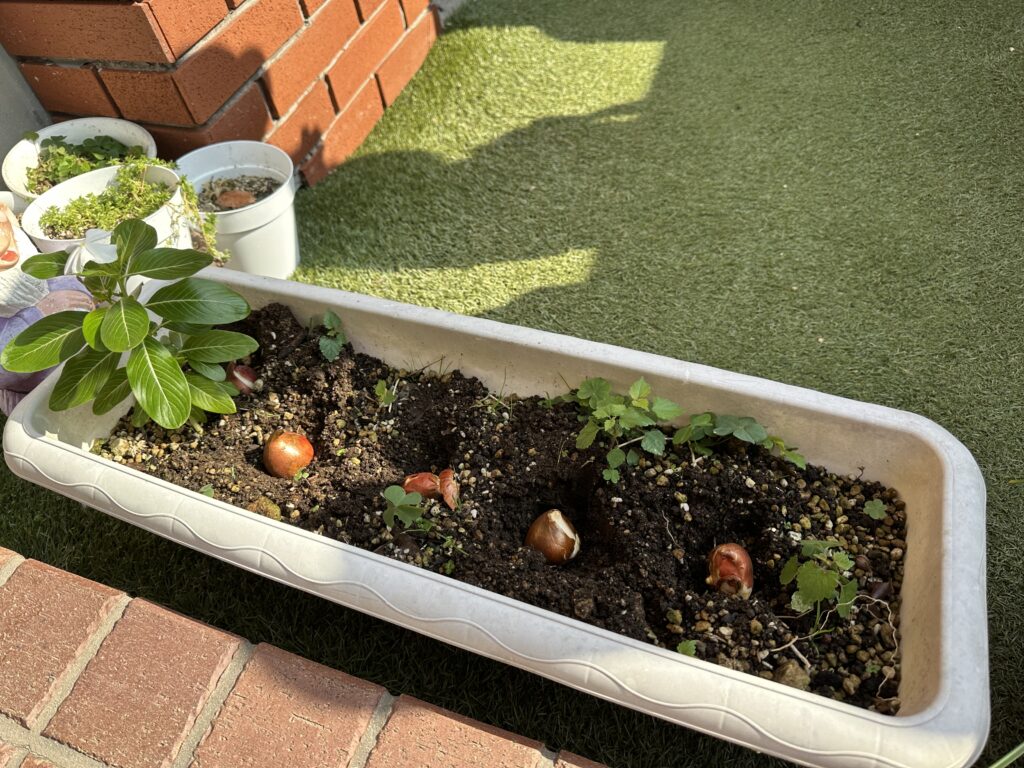 植える向きをしっかり確認して、一人2つずつ植えていきます🌷