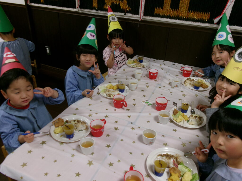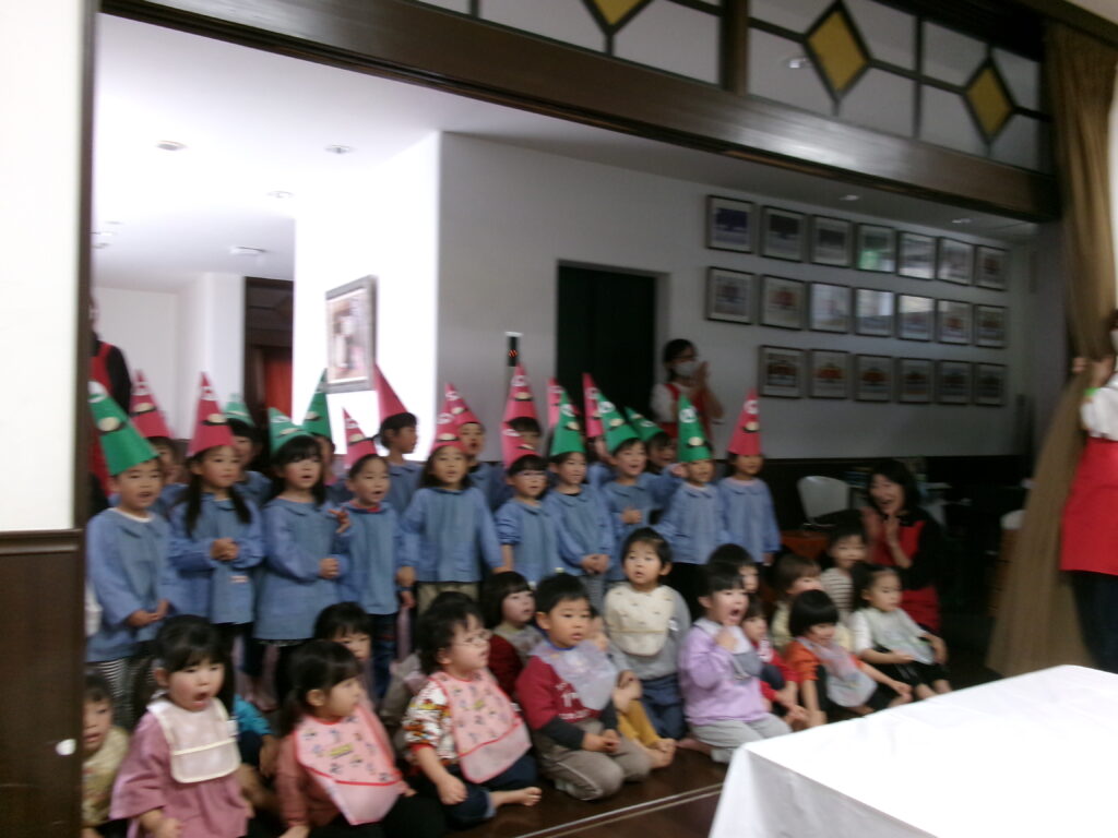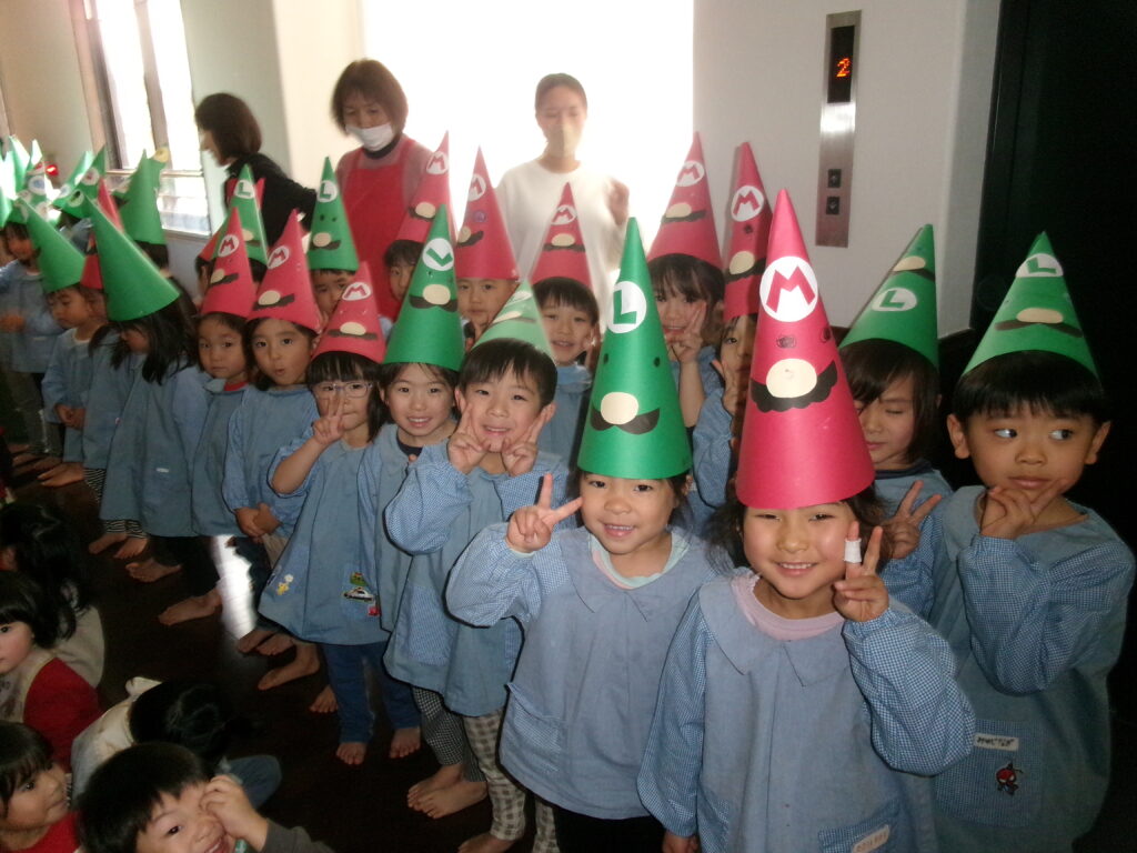 みんなで作った三角帽子をかぶって、うめ組さんのお部屋の前に集合です❤️