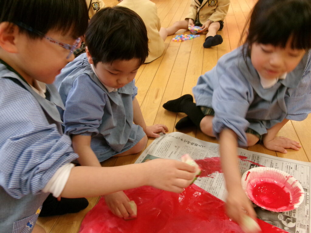 裏もきれいに塗ったら、ばら組さんからうめ組さんまで、みんなに手形をおしてもらいました✋🌟