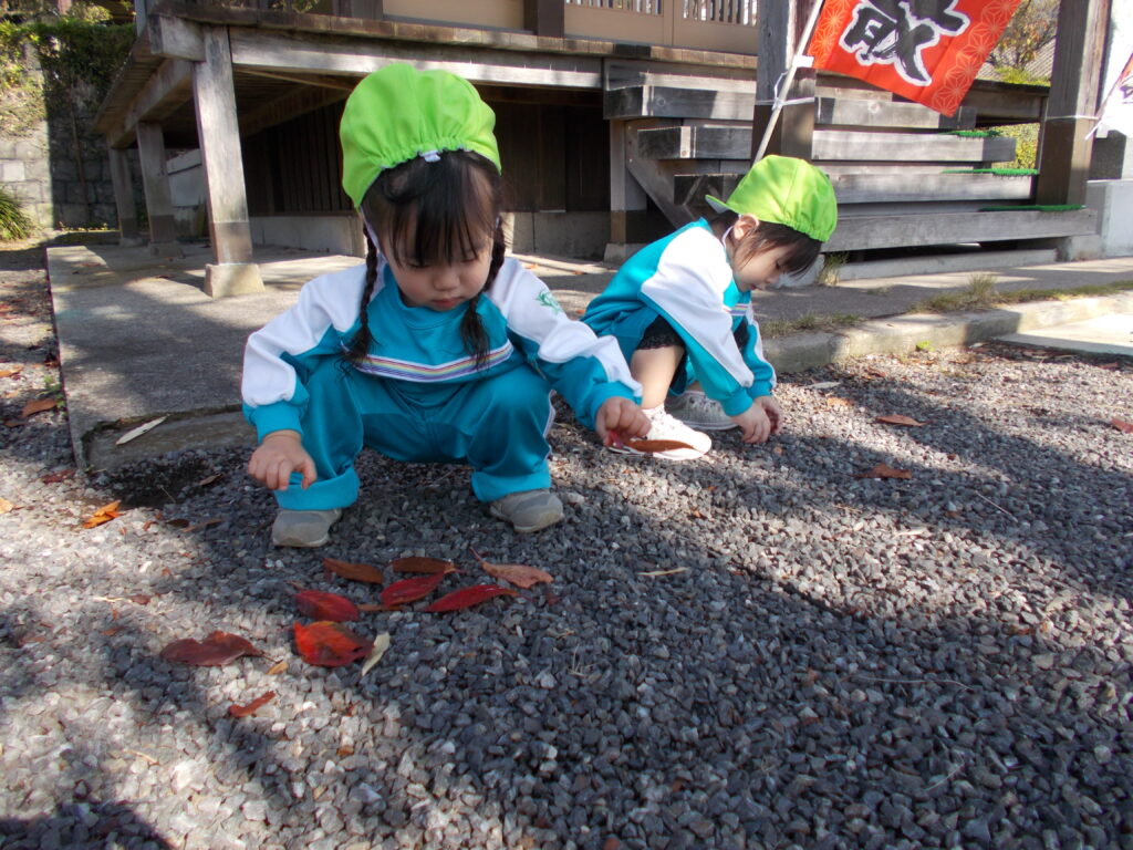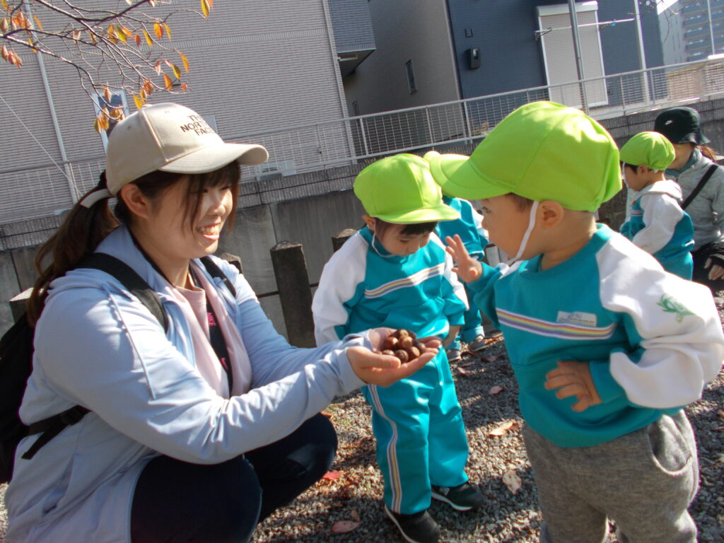 落ち葉を見つけて集めたり、どんぐりを拾って楽しんだりしました🍂