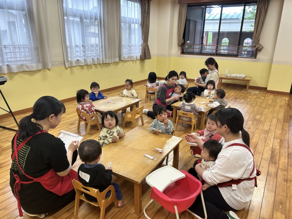 今日初めての登園で沢山泣いたこどもたちでしたが、ピアノでチューリップの曲が流れるとピタッと泣き止む瞬間がありました😆