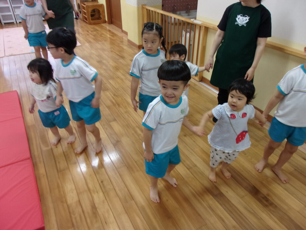 手をつなぎ歌に合わせて歩いたり短い時間でしたが楽しく過ごしました🥰