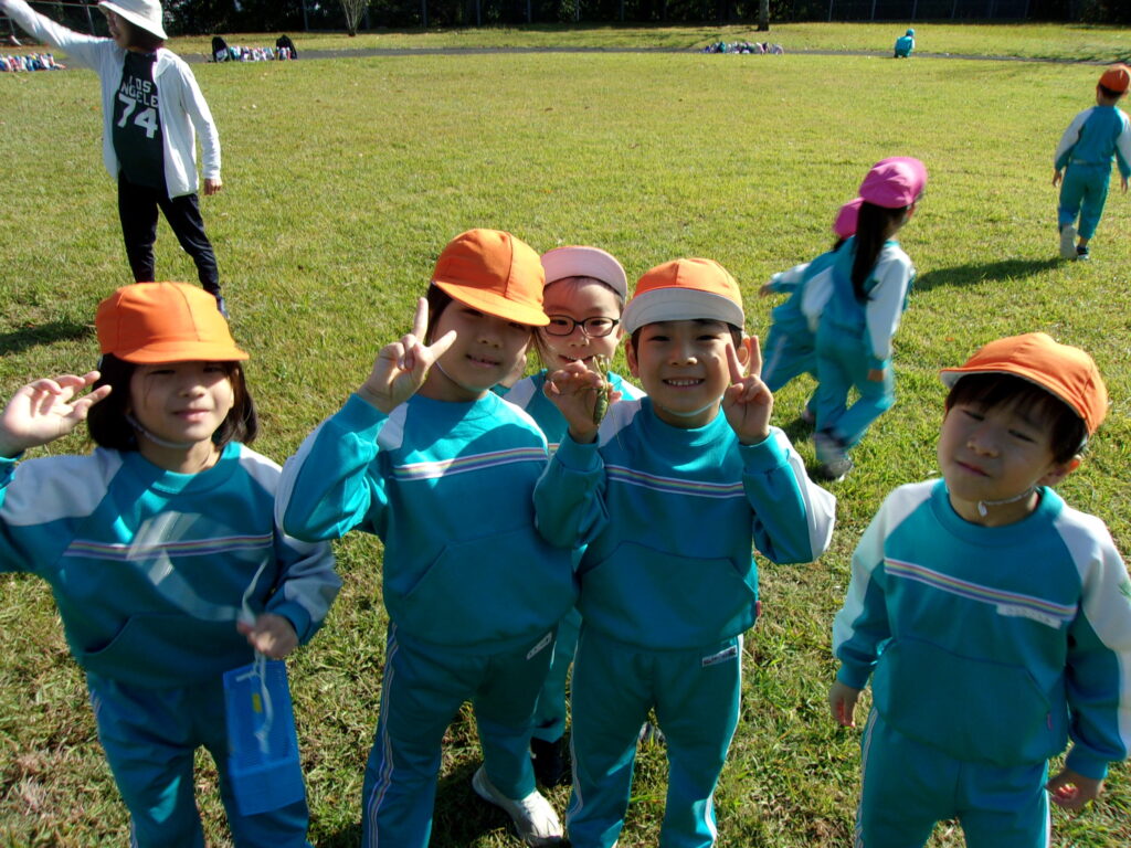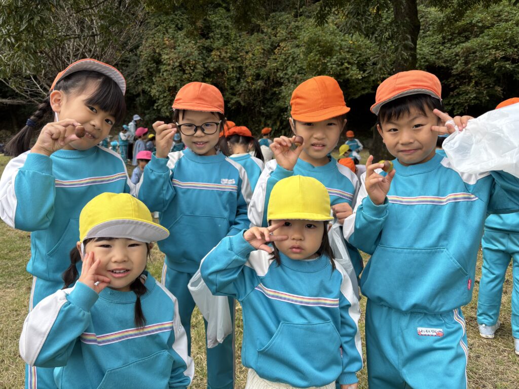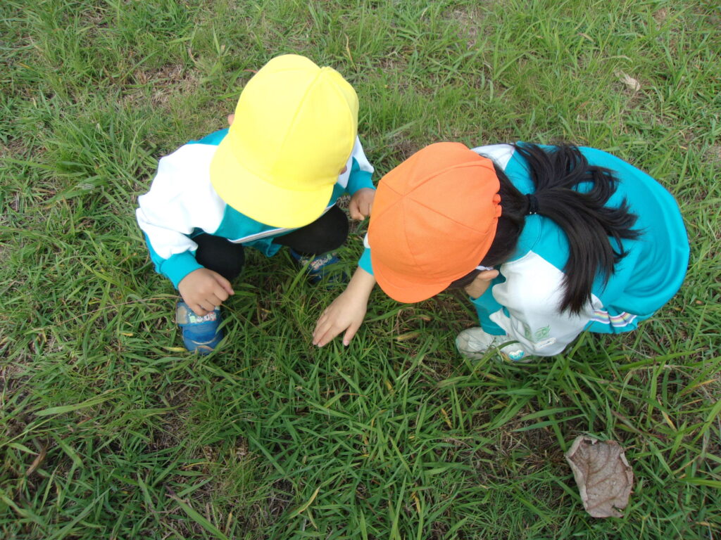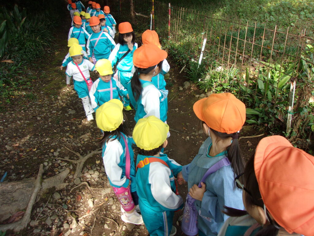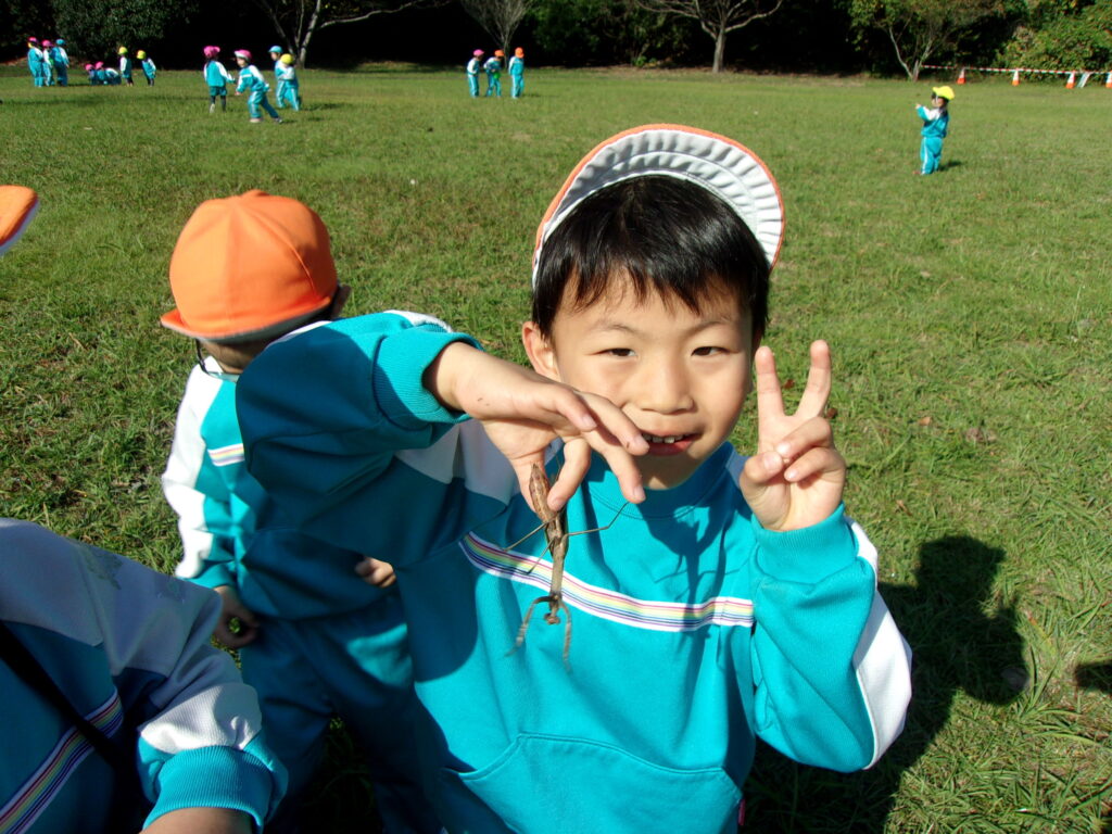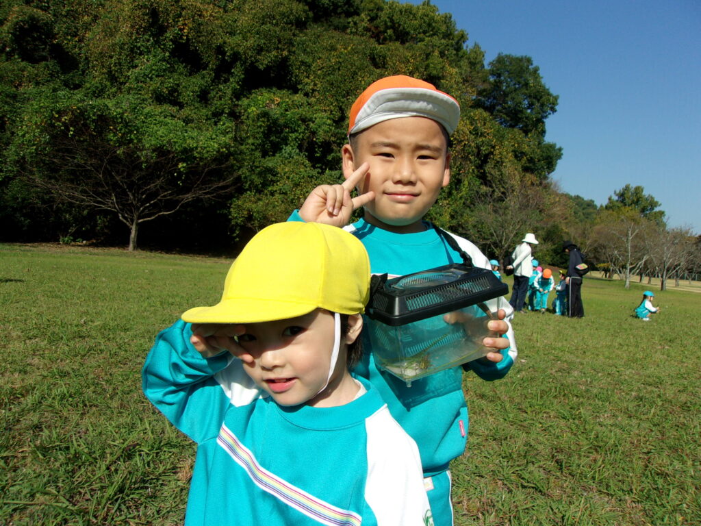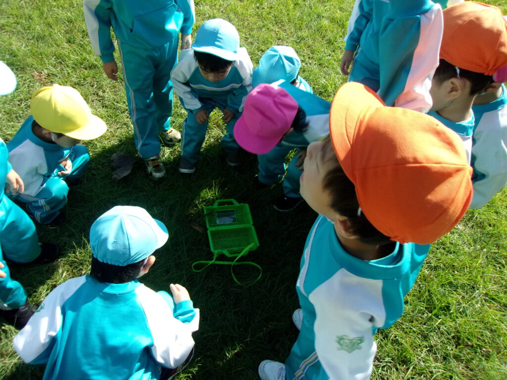 万日山に着いてからは他のクラスのお友達と一緒に虫を捕まえたり、観察したり、どんぐりを拾ったりと仲良く過ごしていました😆