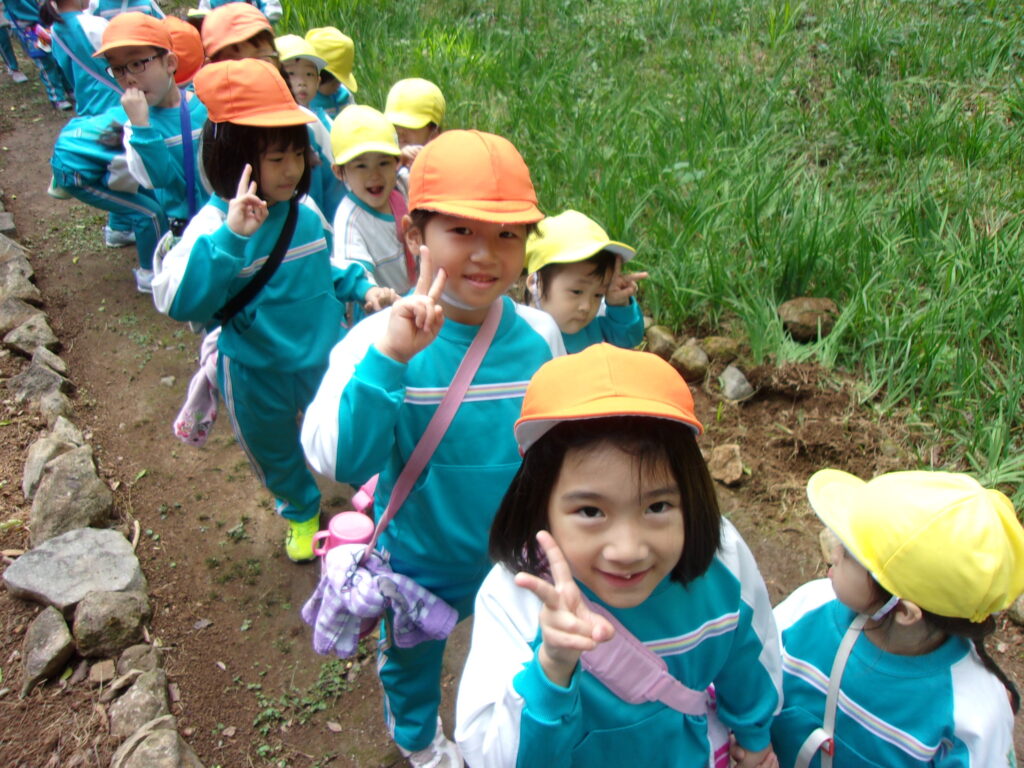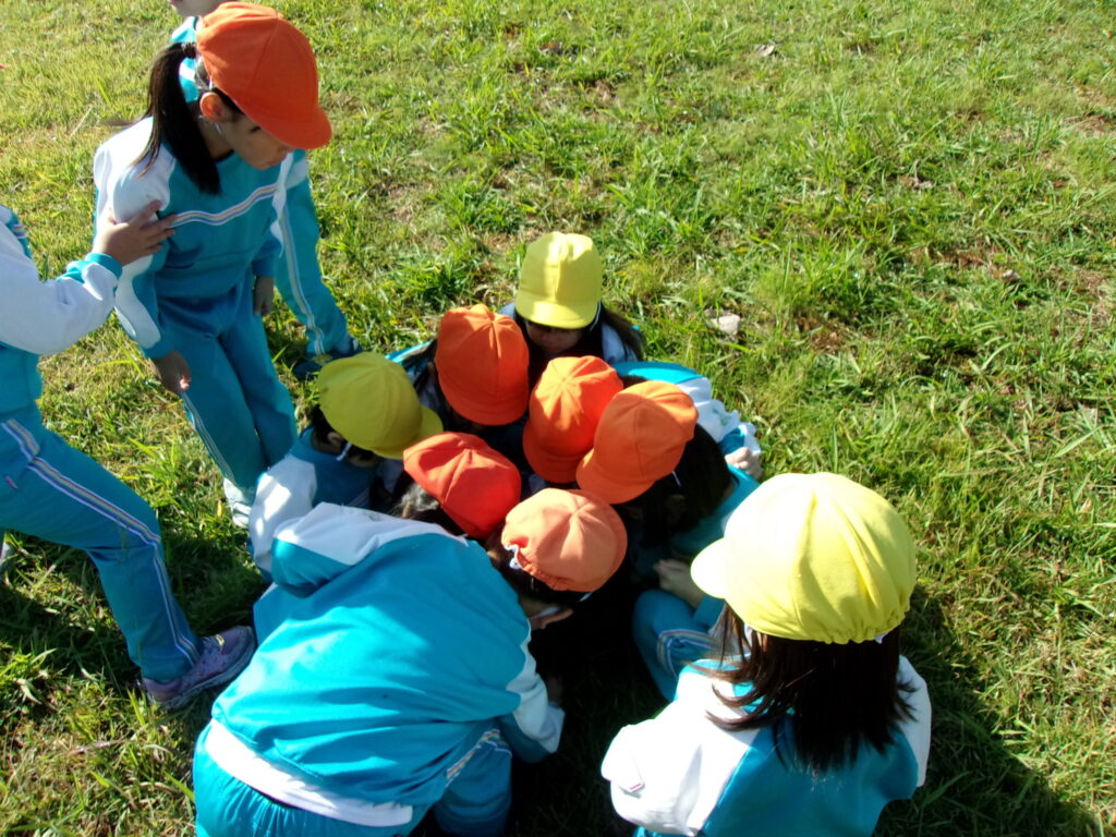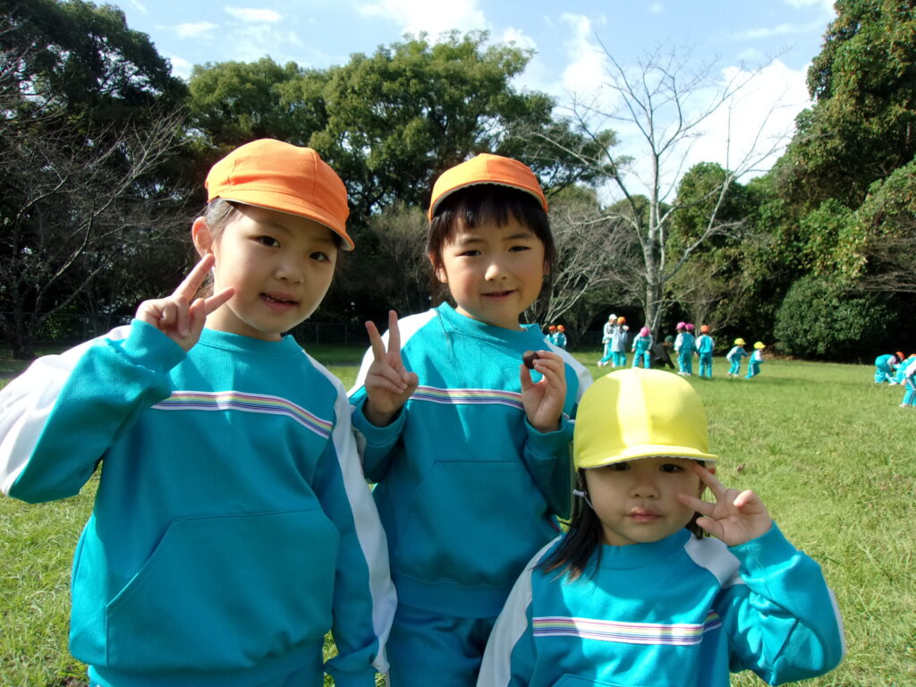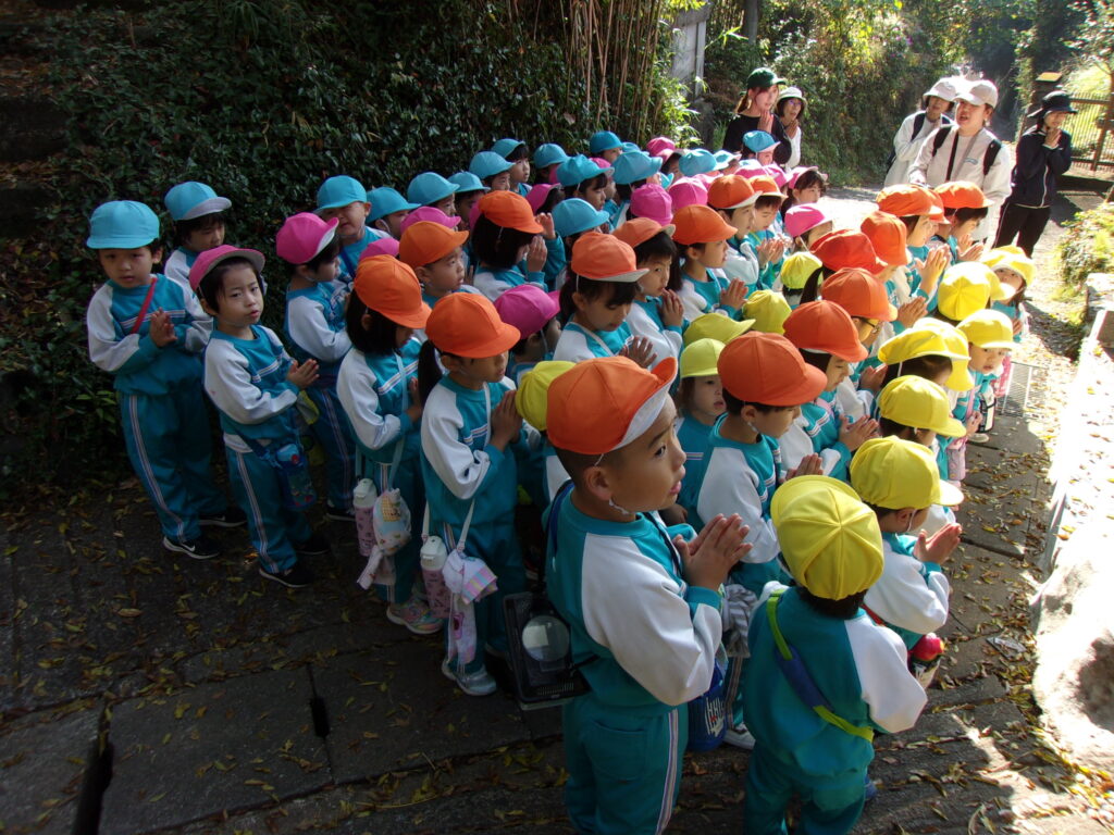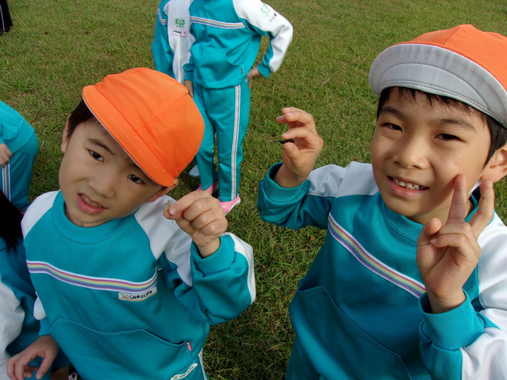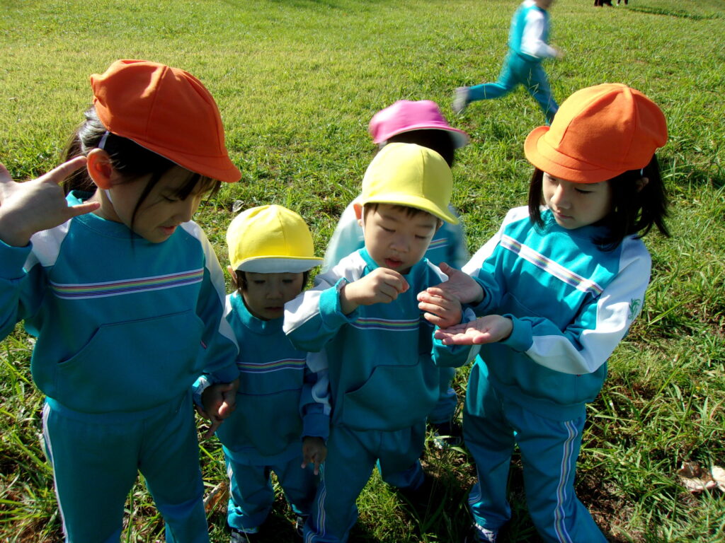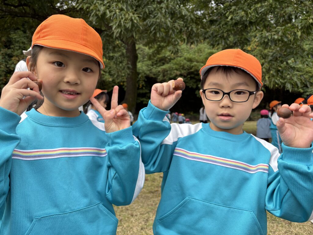 万日山に着いてからは他のクラスのお友達と一緒に虫を捕まえたり、観察したり、どんぐりを拾ったりと仲良く過ごしていました😆
