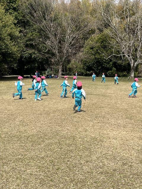 今日は防災の日でした。1年間の避難訓練のまとめとして地震を想定して、園の前の公園まで逃げました🔥