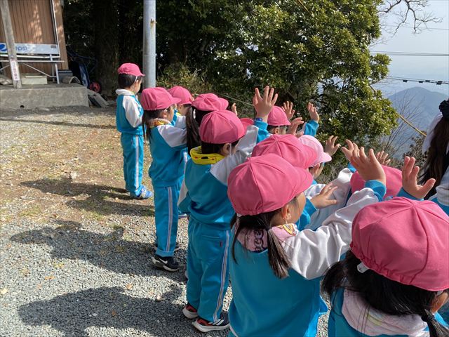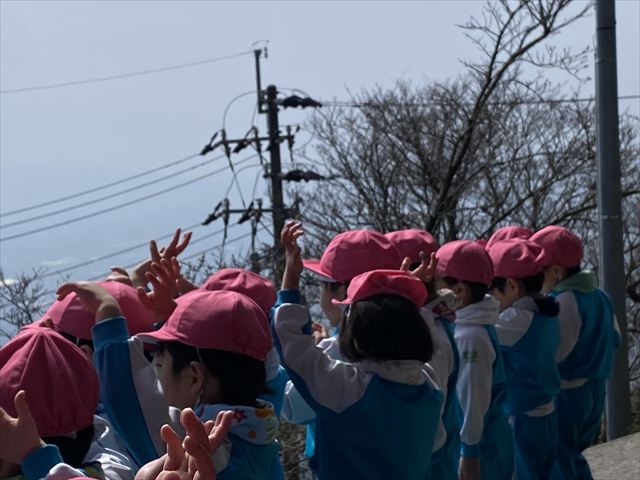 「海が見えた~😊」「お家はどこかな~」と言いながら探したり、保育園の方に向かって「おーーい!」と言いながら手も振りました👋