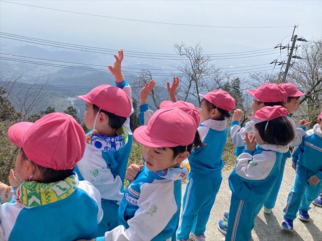 途中滑って転んだりもしましたが、「頑張ろう!」「心を一つにして登ろう」「さくら組さんならやれるよ!」と子どもたちが口々に言っていて心も成長したなと嬉しく思いました🙂↕️