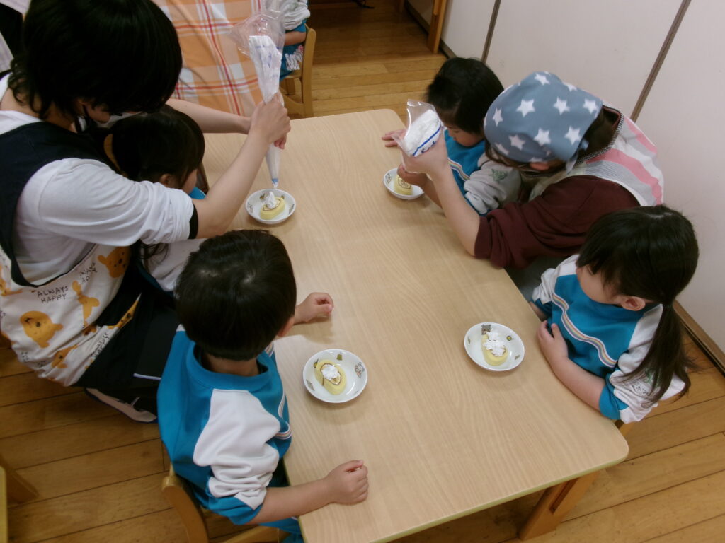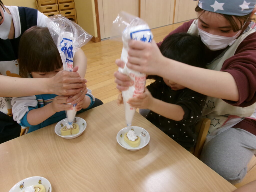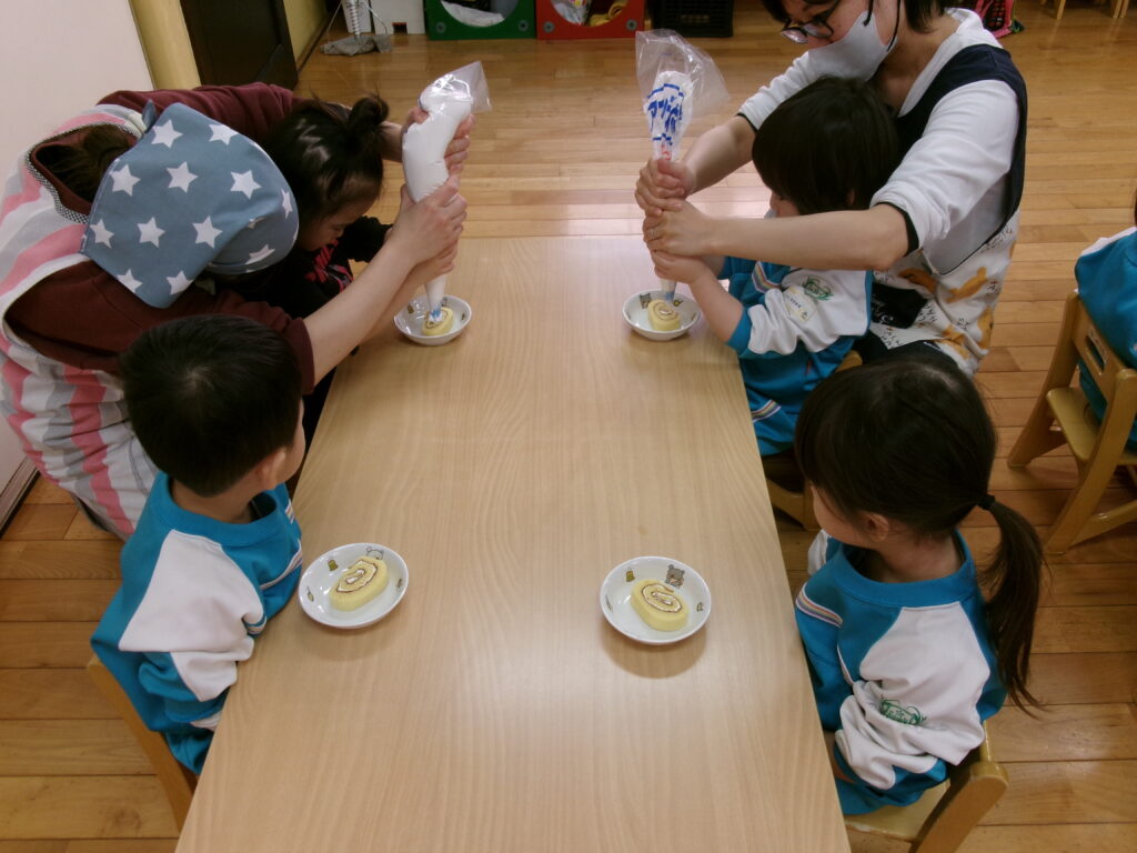 生クリームを先生と一緒に絞って