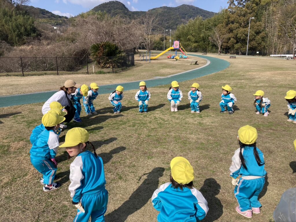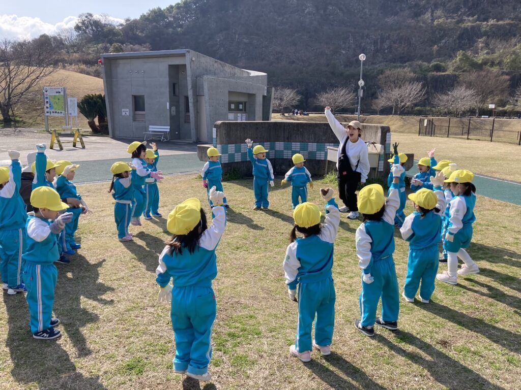 石神山公園に着いたら体操とお約束をして
