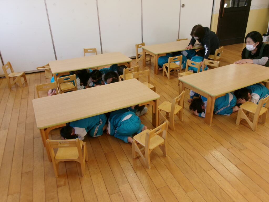 今日は防災の日で大地震の時の避難の仕方を学びました!
