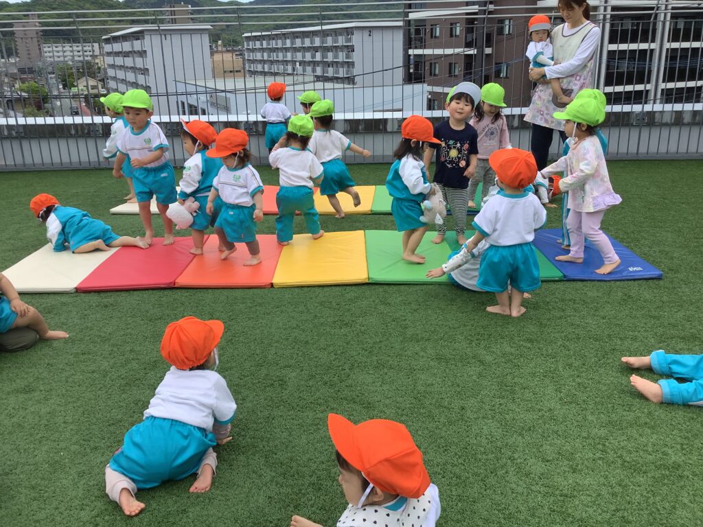 今日は3階の広場に行きばらさんと一緒に遊びました!