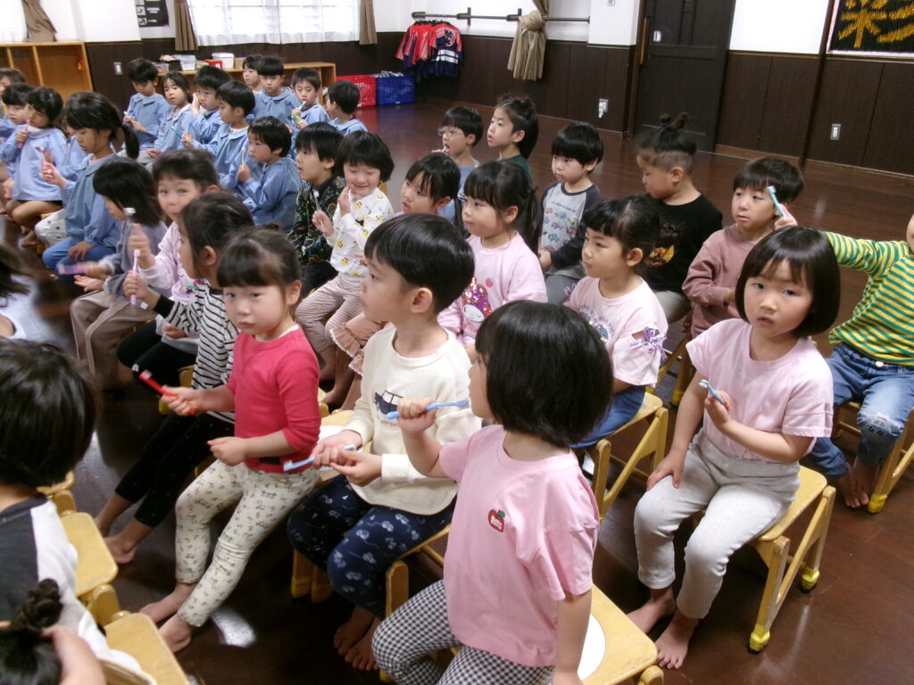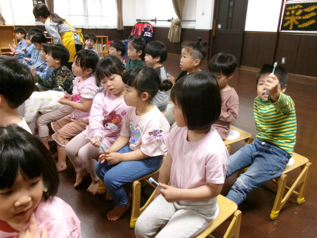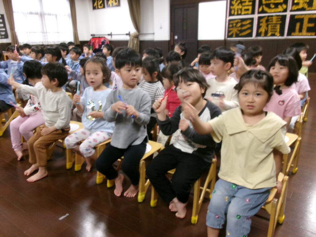 歯ブラシの「こんにちはの持ち方」と「さようならの持ち方」をみんなで確認しました🪥✨