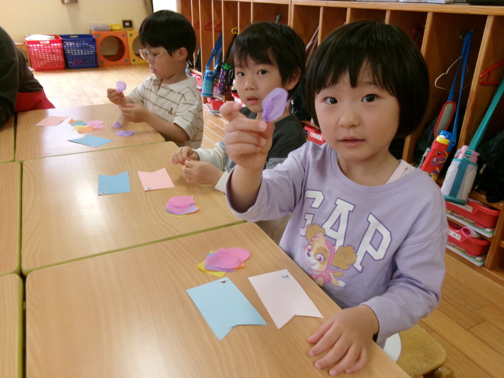 花紙は、ピンク、オレンジ、黄色、水色、紫の5色です❣️