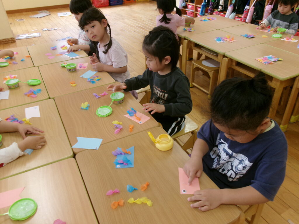 花紙をねじる力加減が難しく破ってしまうこともありましたが、