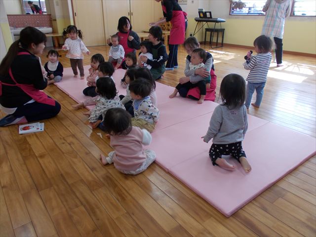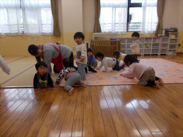 転んだ時に手が出るよう、歌に合わせ手をつきます