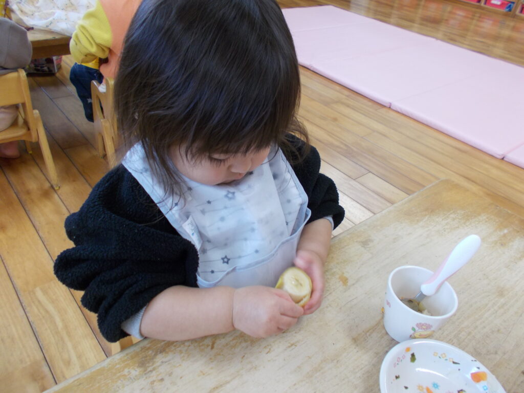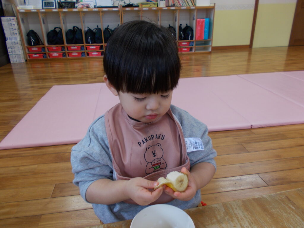 自分でむいたバナナをおいしそうに食べていました❤️🩷