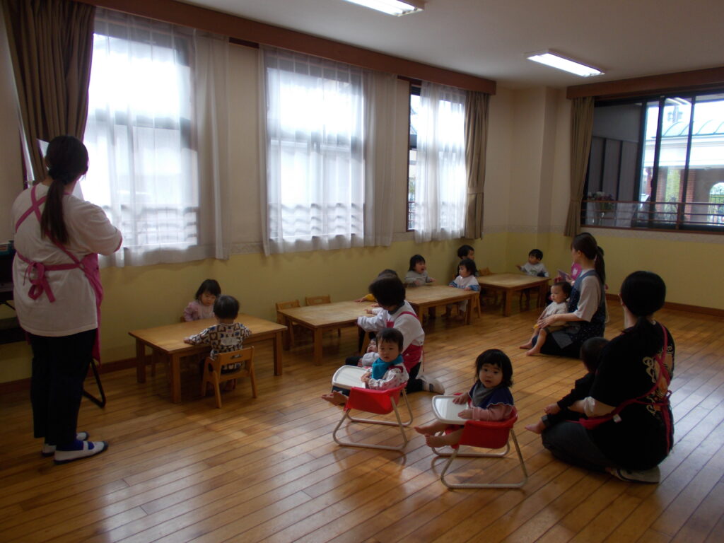 音楽に合わせて体を揺らしたり、手をたたいたりして楽しむお友だちでした🎵