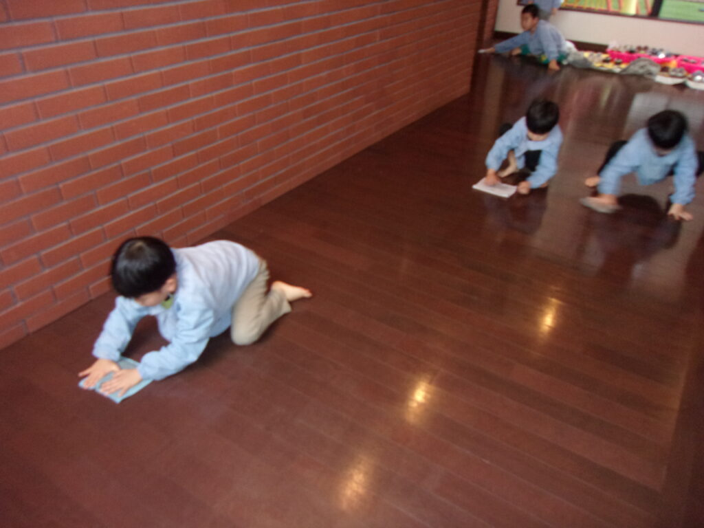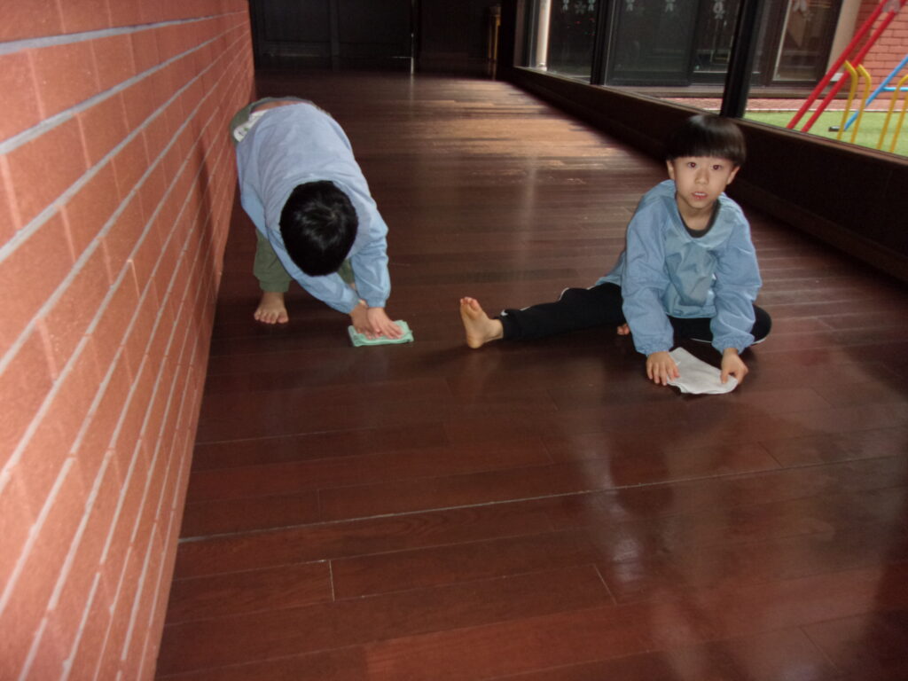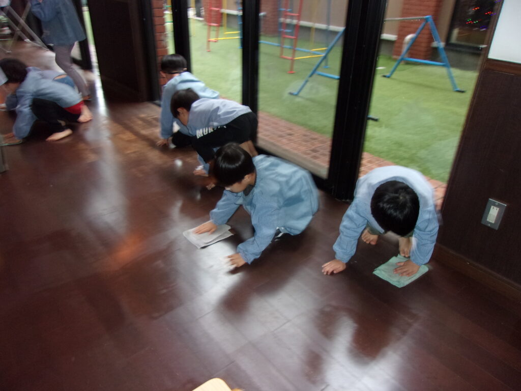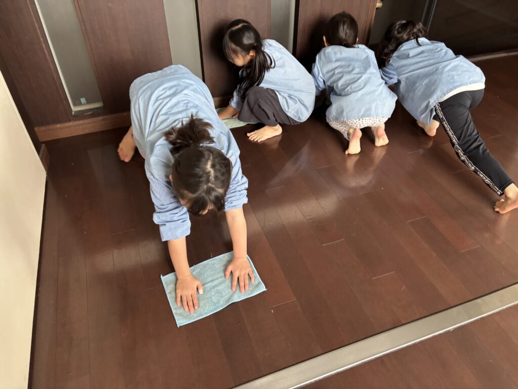 廊下や階段、自分たちの棚も隅々まで拭きました☺️