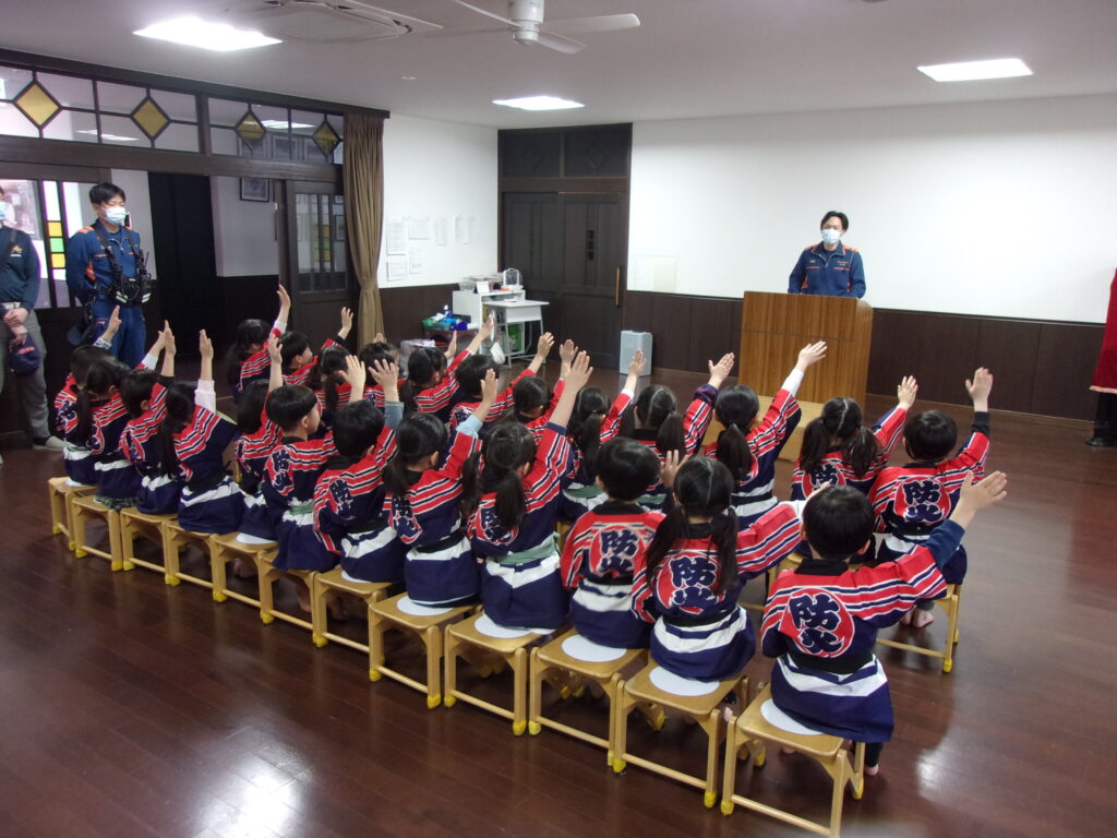 最後にみんなで「僕たち、私たちは火遊びは絶対にしません。火の用心を守ります」と誓いの言葉を言いました!