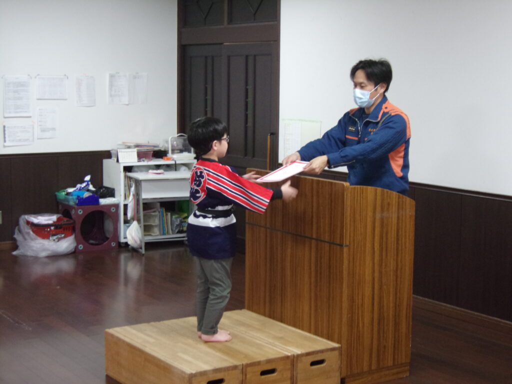 1年間誠櫻幼愛園のリーダーとして避難訓練に参加してきましたので、消防士さんに表彰をしてもらいました😊