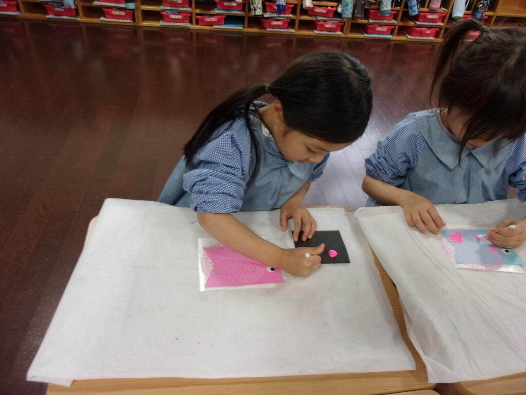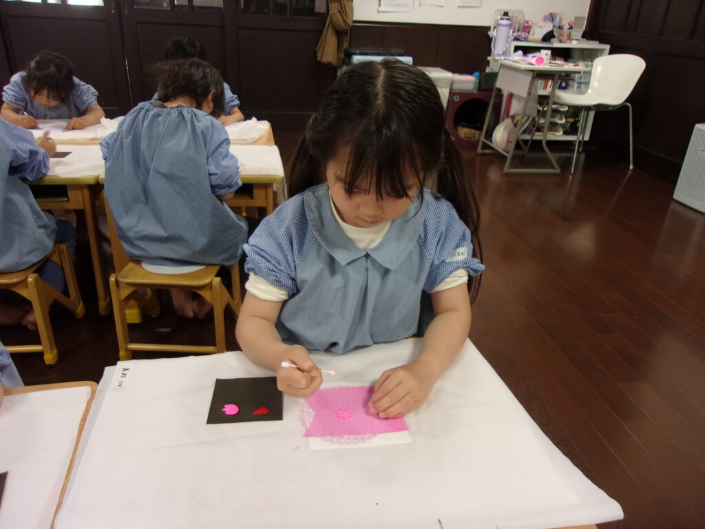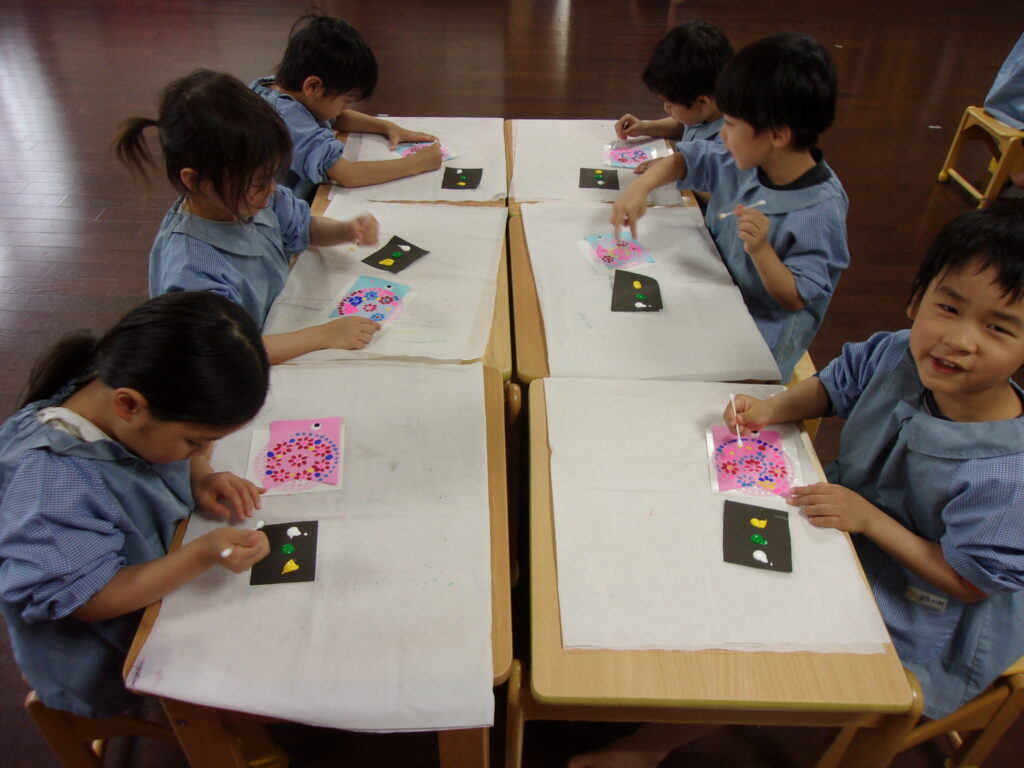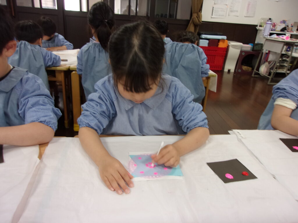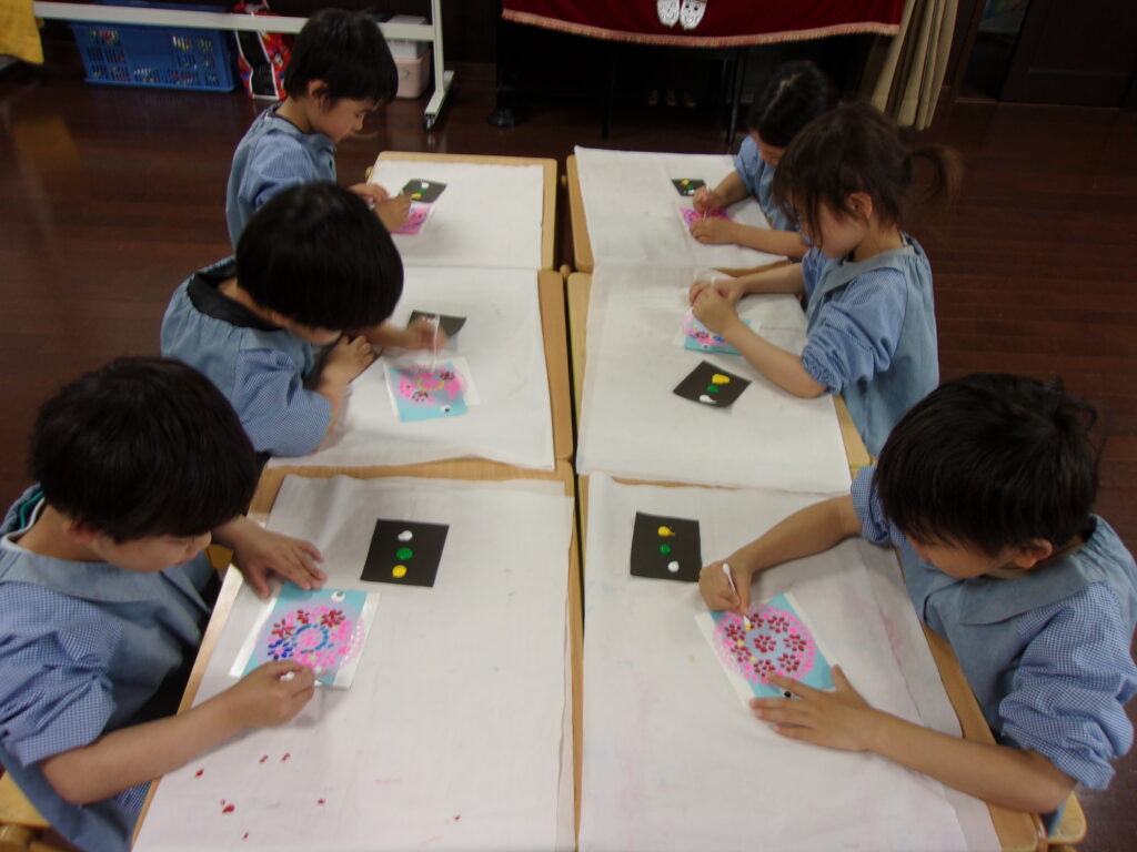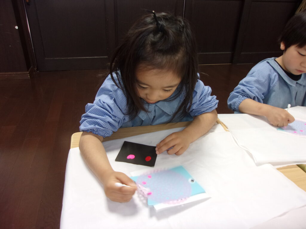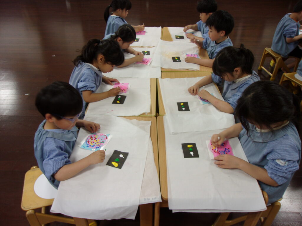 小さい折り紙でカブトを折ったり、綿棒を使って絵の具で色付けしたりと楽しく製作しました😊