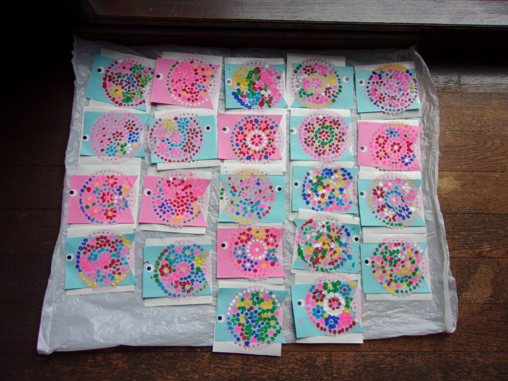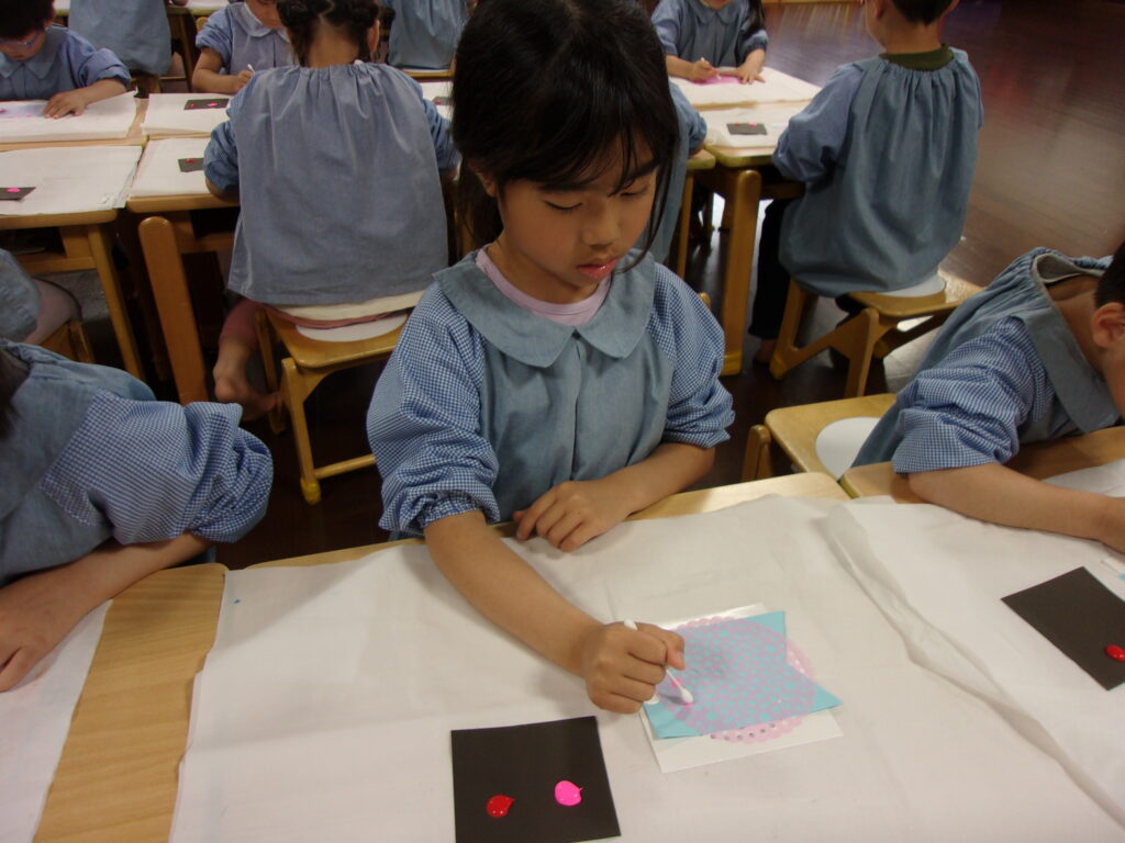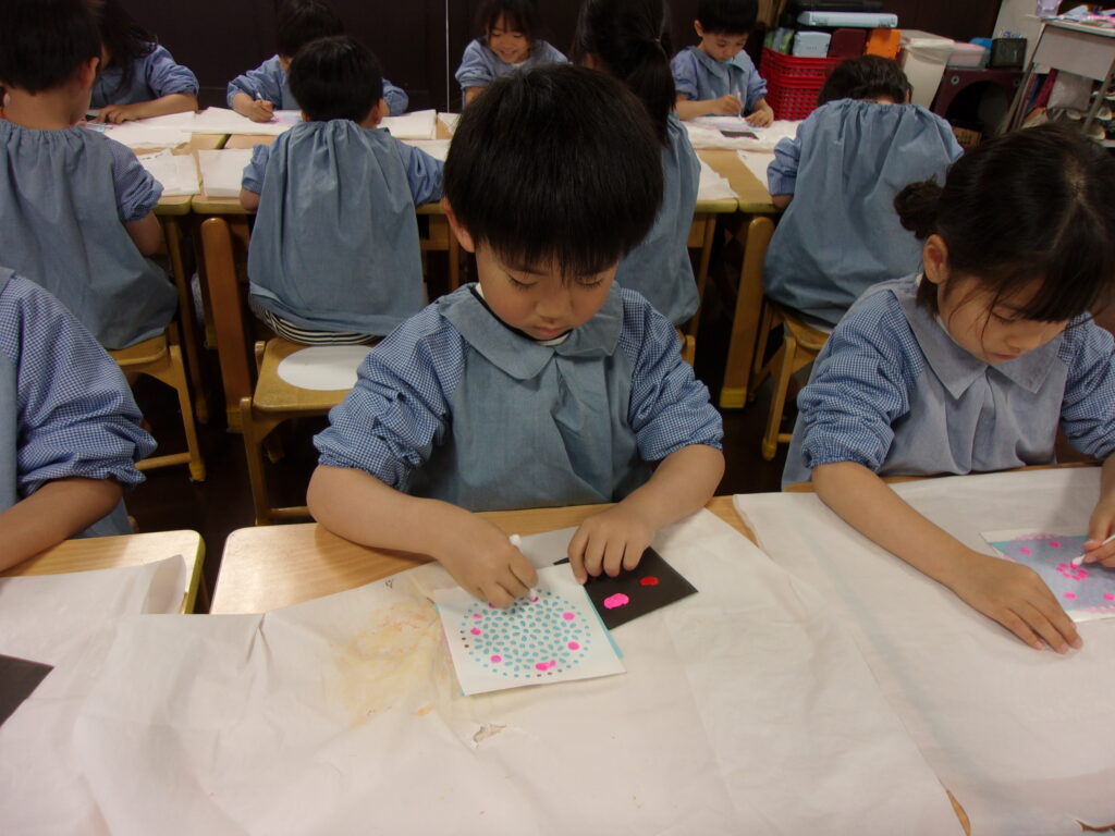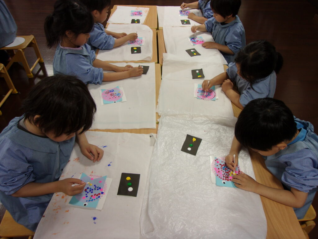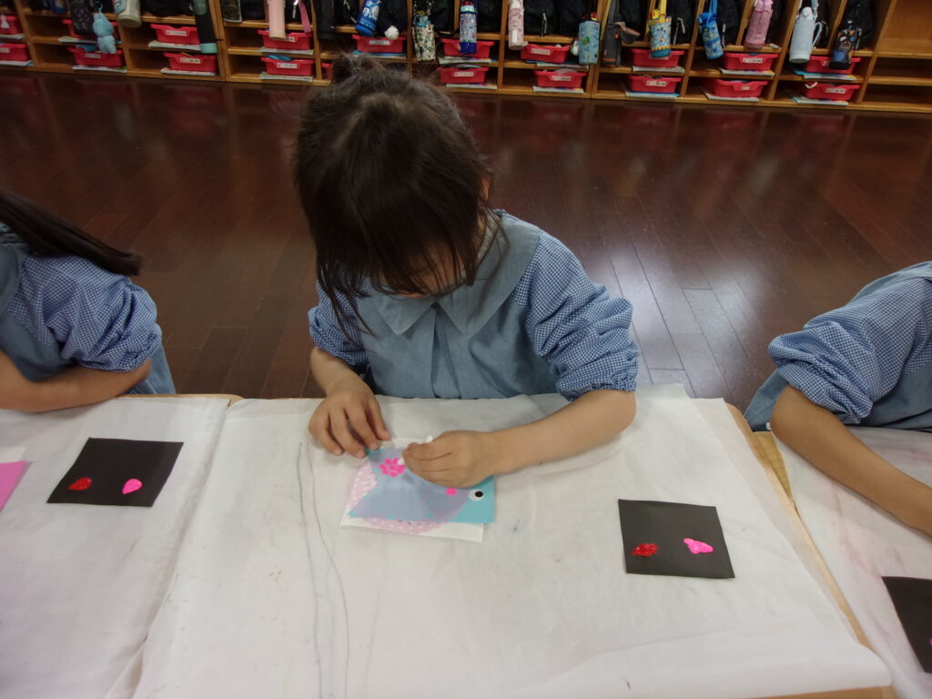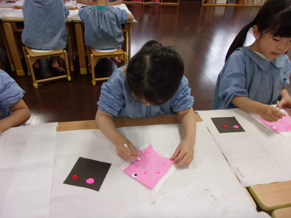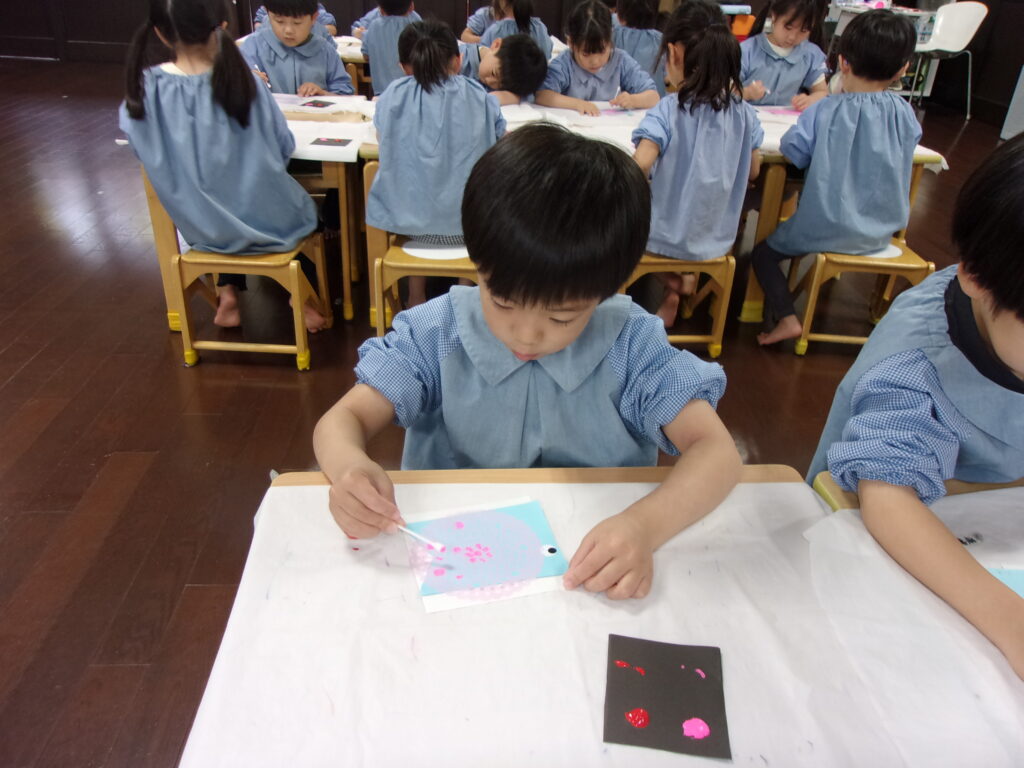 小さい折り紙でカブトを折ったり、綿棒を使って絵の具で色付けしたりと楽しく製作しました😊