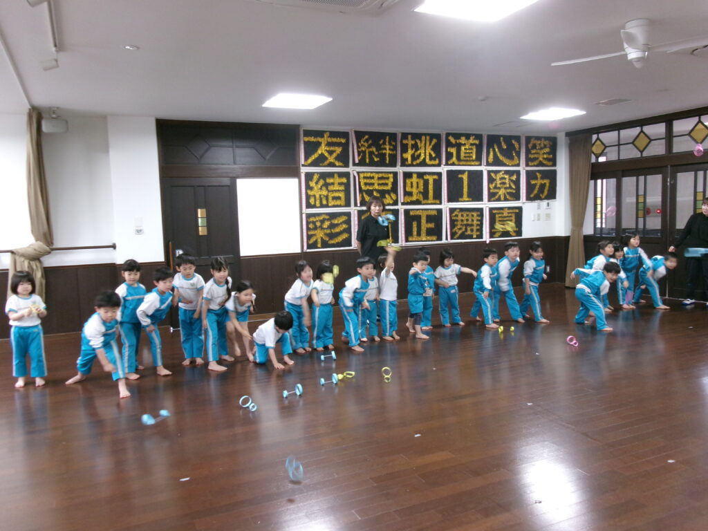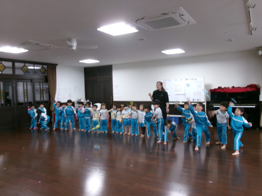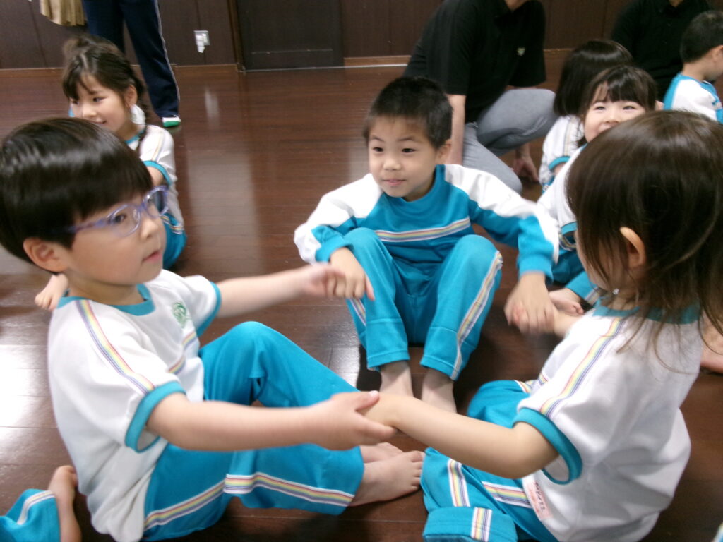 園に戻ってからはうめ組の部屋で3クラス混合で3チームに分かれ「あくしゅでこんにちは」をして自己紹介をしました😊うめぐみさんはお手本になるように大きな声で自己紹介してくれていました💕