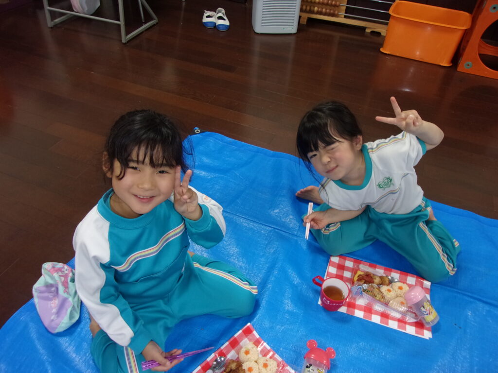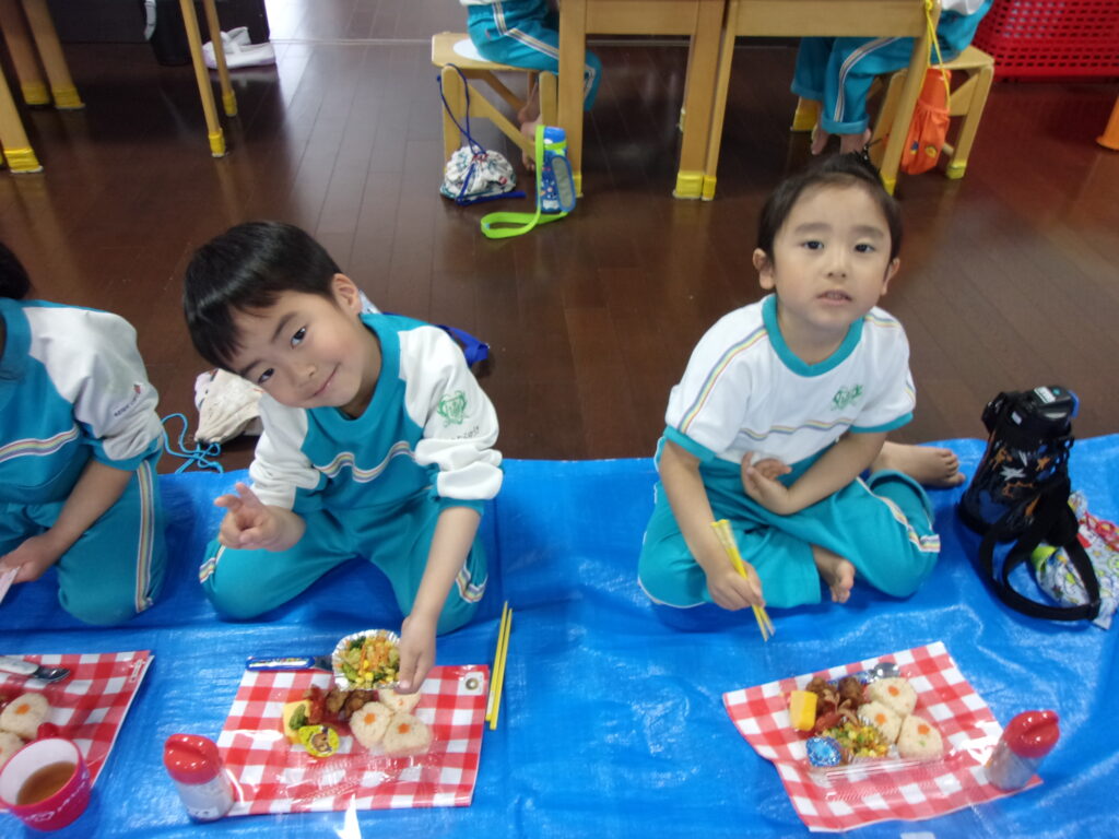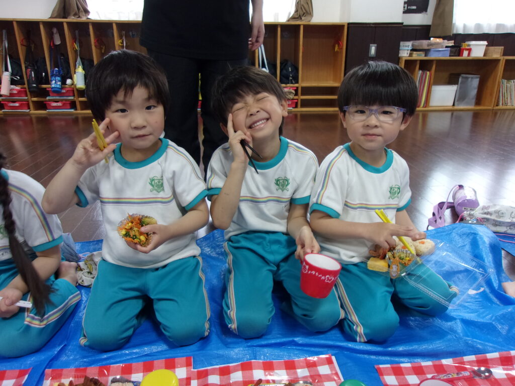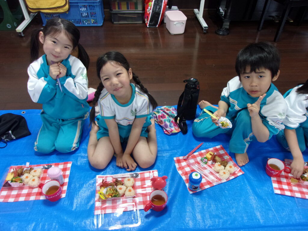 その後はみんなのお待ちかね、美味しいお弁当を食べました🍱おにぎりに唐揚げにたこさんウインナー・・・みんなの大好きなものが沢山でした💖