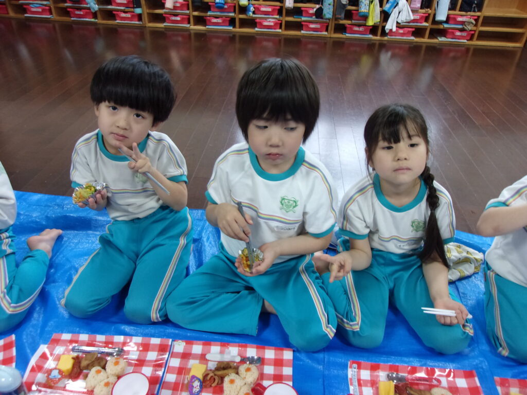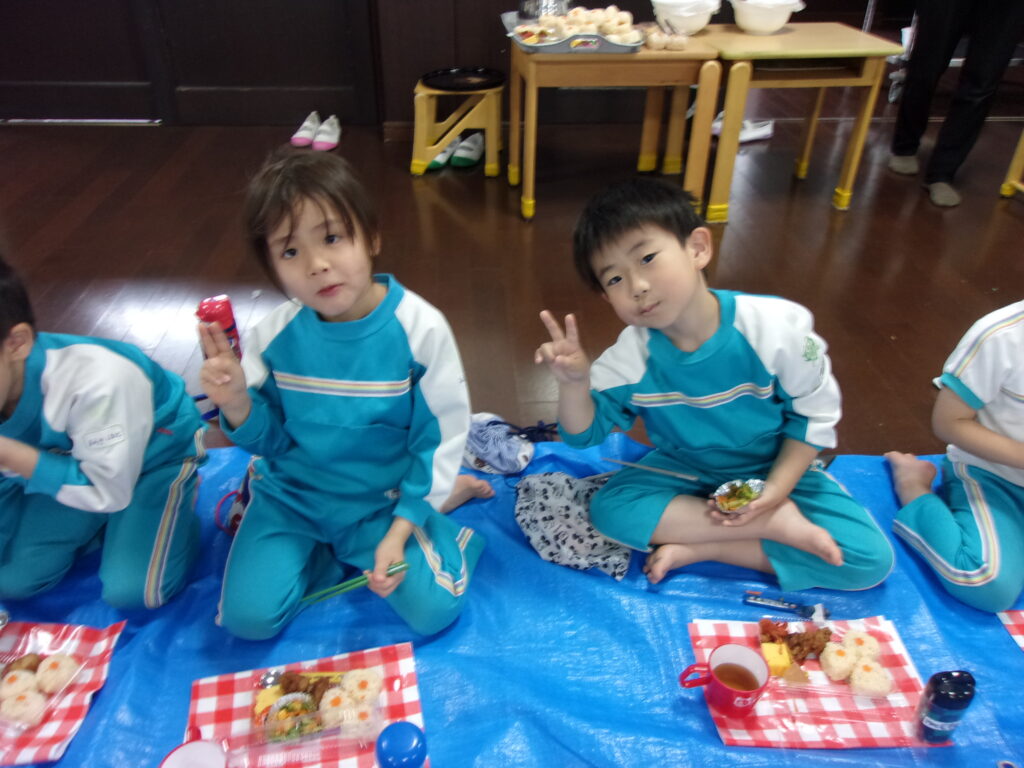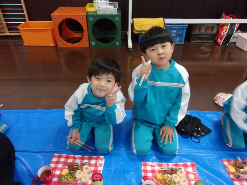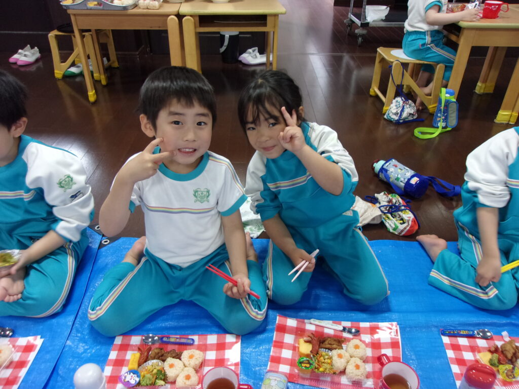 その後はみんなのお待ちかね、美味しいお弁当を食べました🍱おにぎりに唐揚げにたこさんウインナー・・・みんなの大好きなものが沢山でした💖