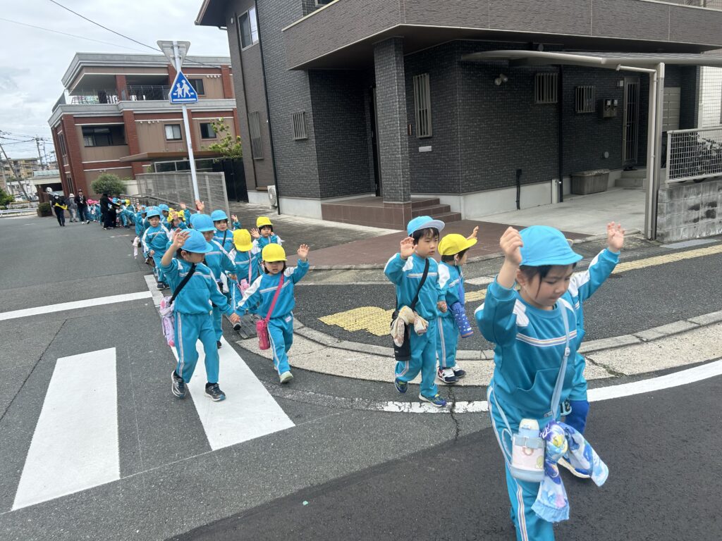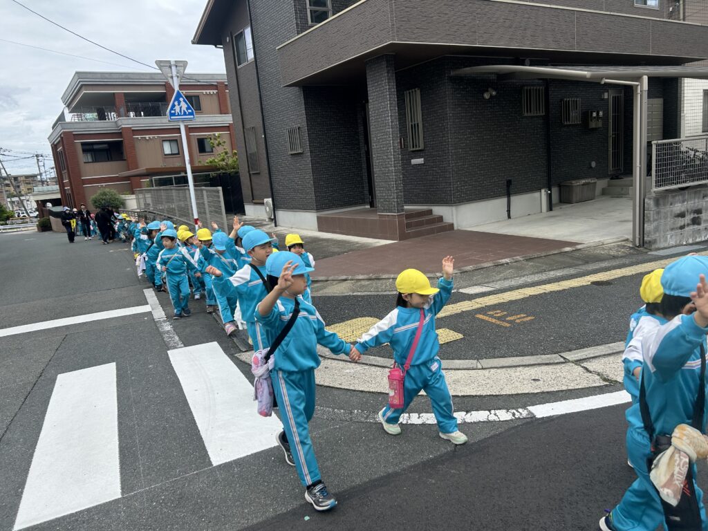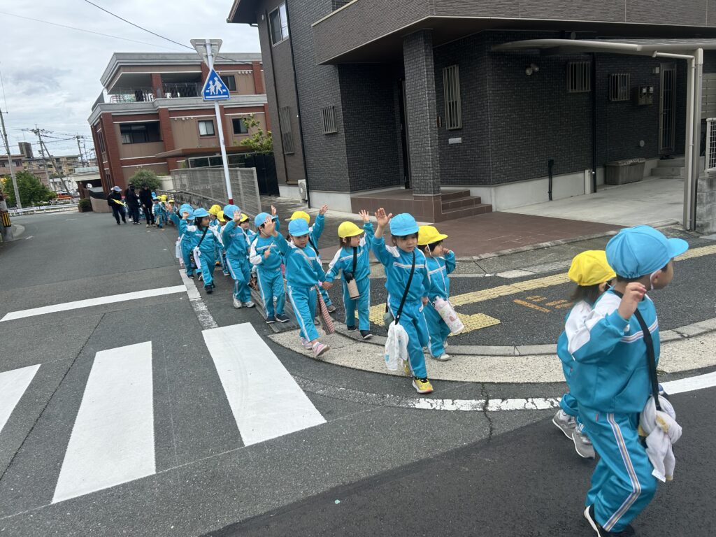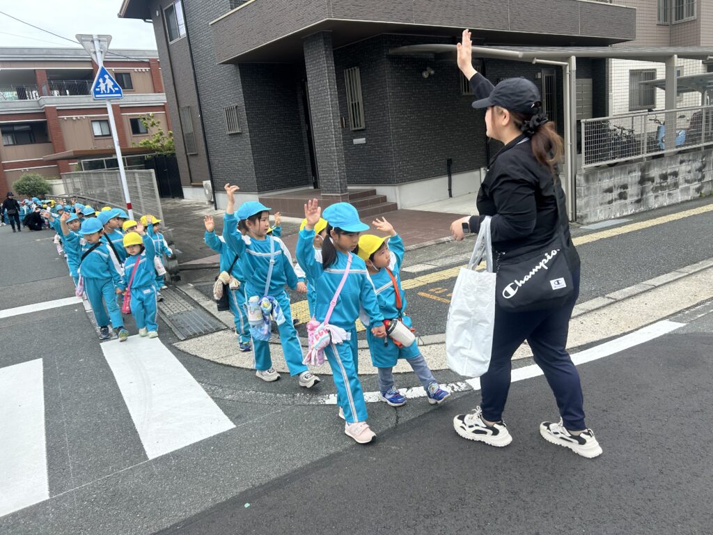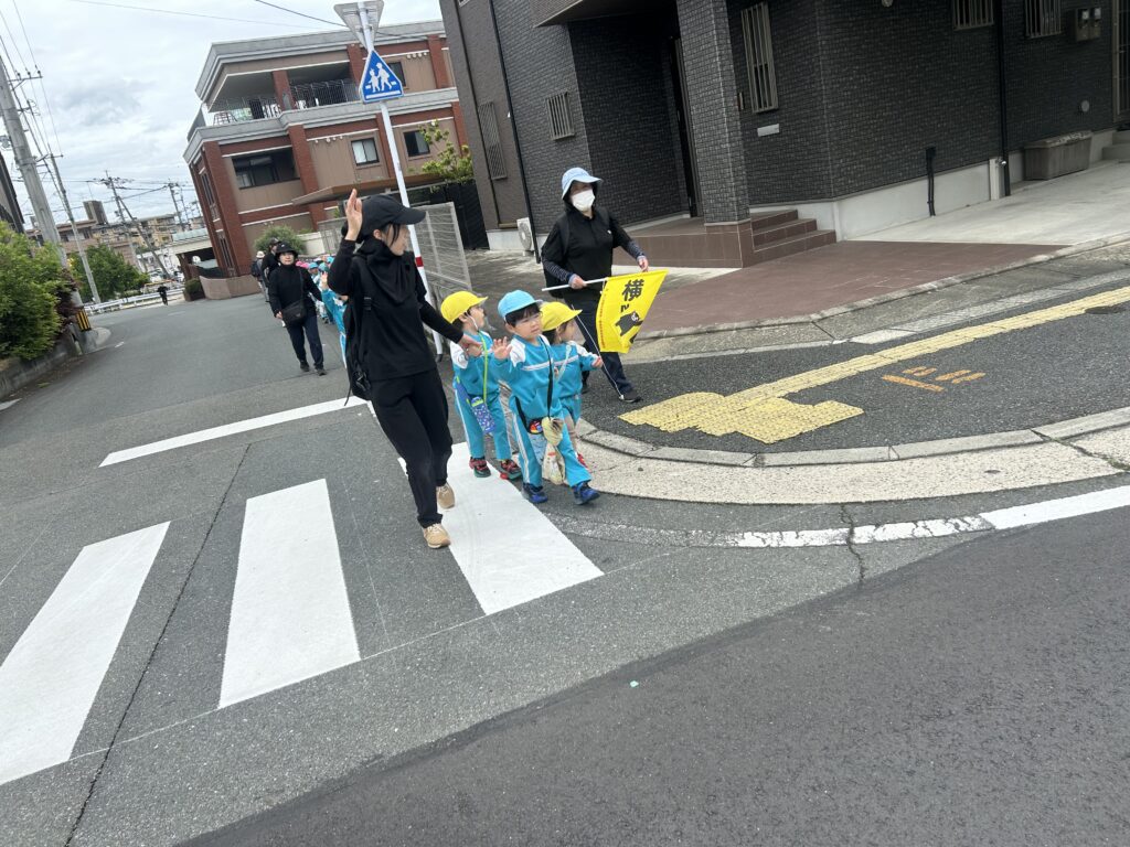 交通ルールのお約束をして、さくら組さんと手を繋いでしっかりお世話をしてくれていました😄